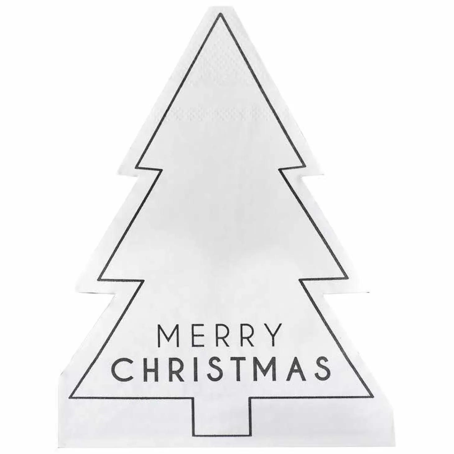 Black And White Merry Christmas Paper Napkins (16Pk)