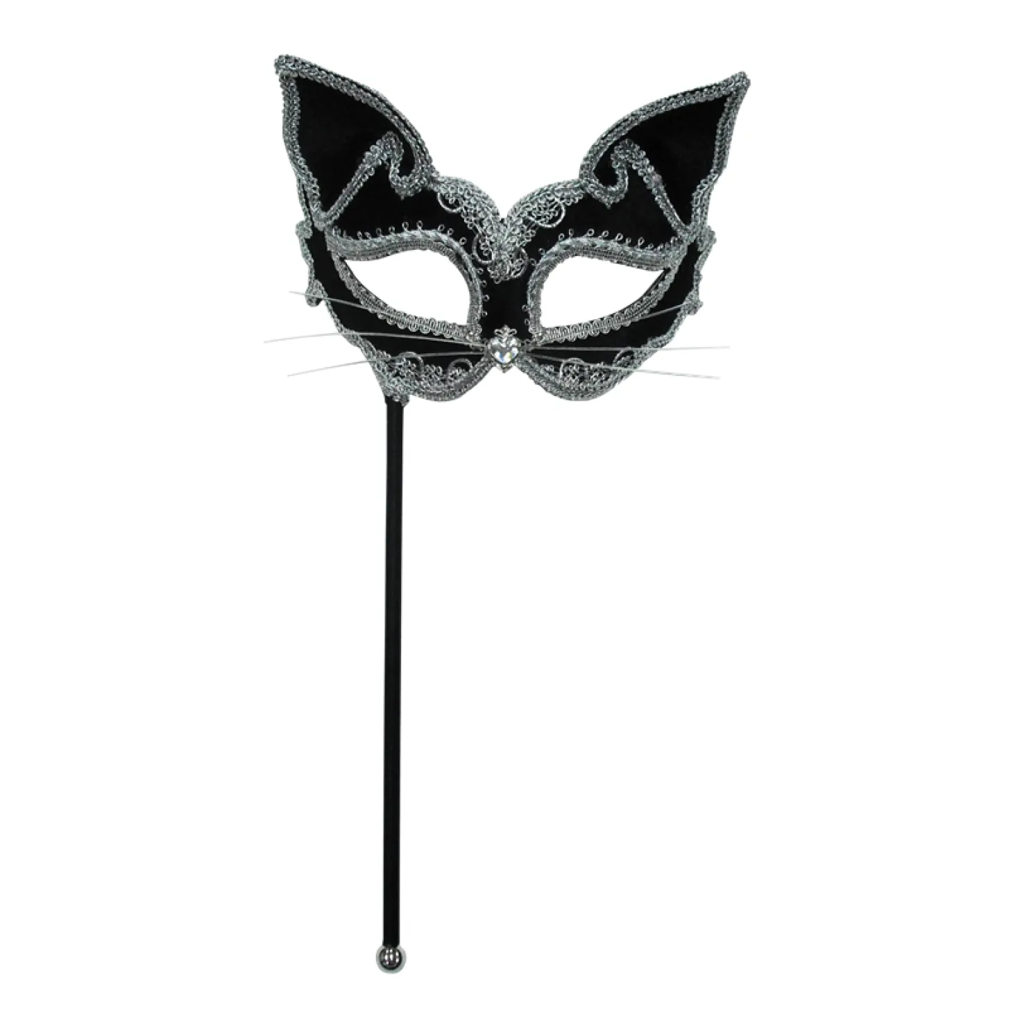 Add A Little Feline Fun To Your Masquerade Party Outfit. A Twist On The Classic Style, This Mask Is Shaped Like A Cat’s Head, With Moulded Ears, Synthetic Whiskers And A Gem Nose. It Has A Luxurious Black Velvet Finish With Detailed Silver Braiding. Hold Up To Your Face With The Attached Stick.