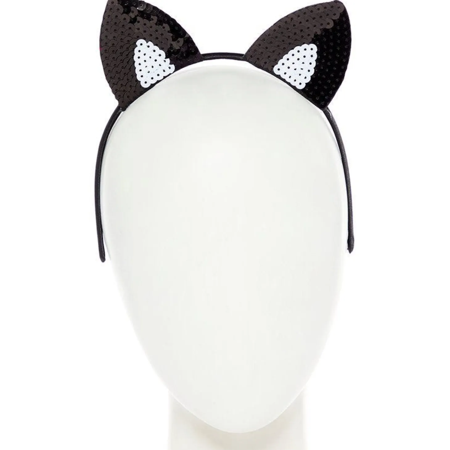 Perfect For Halloween, These Sparkly Cat Ears Are A Quick And Easy Way To Transform A Simple Black Outfit Into A Feline Fancy Dress Costume. Attached To A Headband, Each Cat Ear Is Covered In Black And White Sequins For A Dazzling Effect.