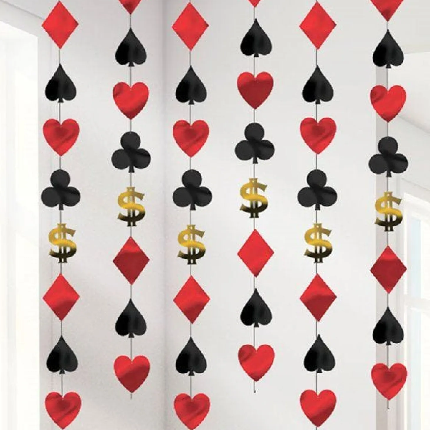 This Casino Themed Hanging Strings Decoration Contains 6 Strings Each. Length: 2.1M (6Ft 10”).