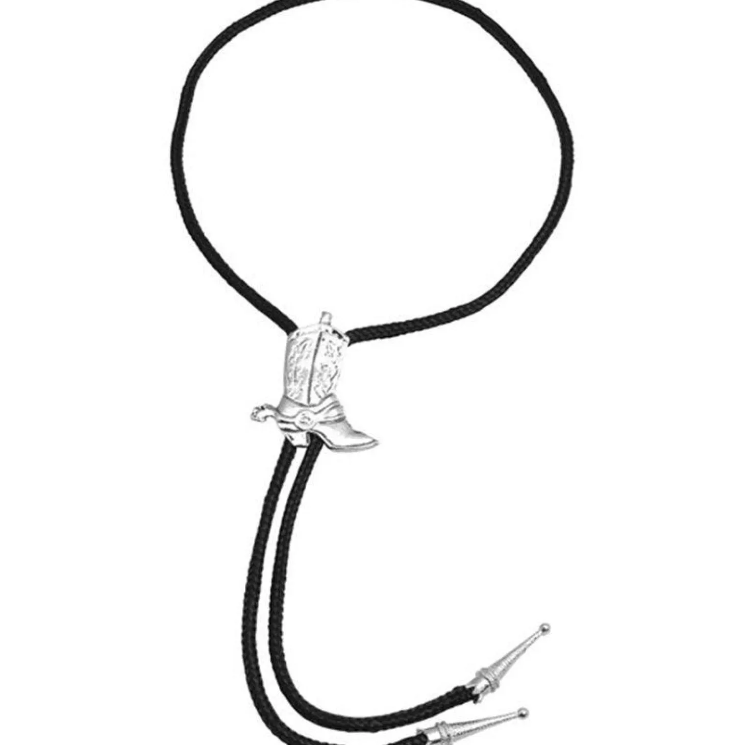 This Authentic Western Cowboy Necktie Makes A Great Addition To Any Western Cowboy Or Cowgirl Costume. This Wild West Bolo Tie Consists Of A Black Corded Neck-Tie With Metal Cowboy Boot Slide And Matching Metal Tips.Measurements: Approx Length Of Cord 95 Cm.