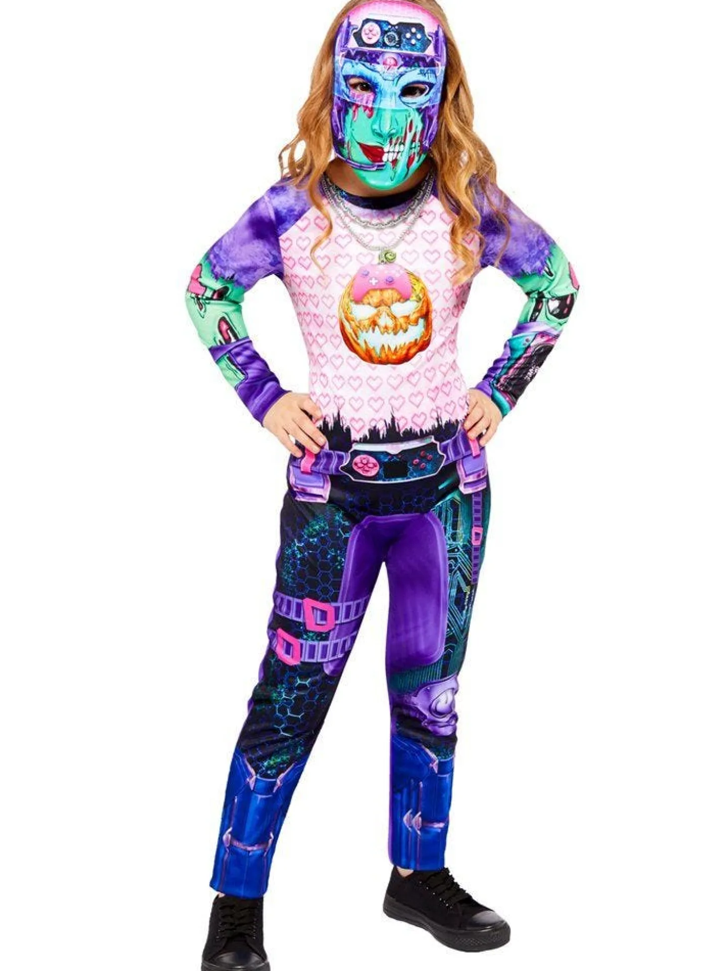 This Halloween Your Little One Can Step Away From Their Gaming And Become A Participant With This Gamer Girl Costume. The Costume Features A Jumpsuit With All Over Gaming Print And A Felt Mask With An Elasticated Strap To Secure In Place.