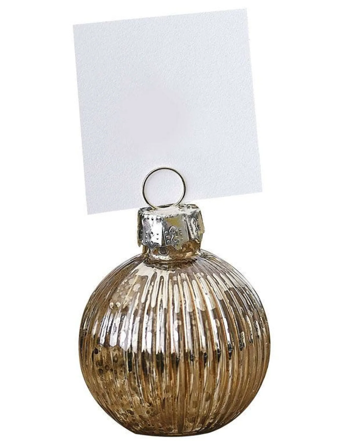 Gold Ribbed Bauble Place Card Holders (4Pk)
