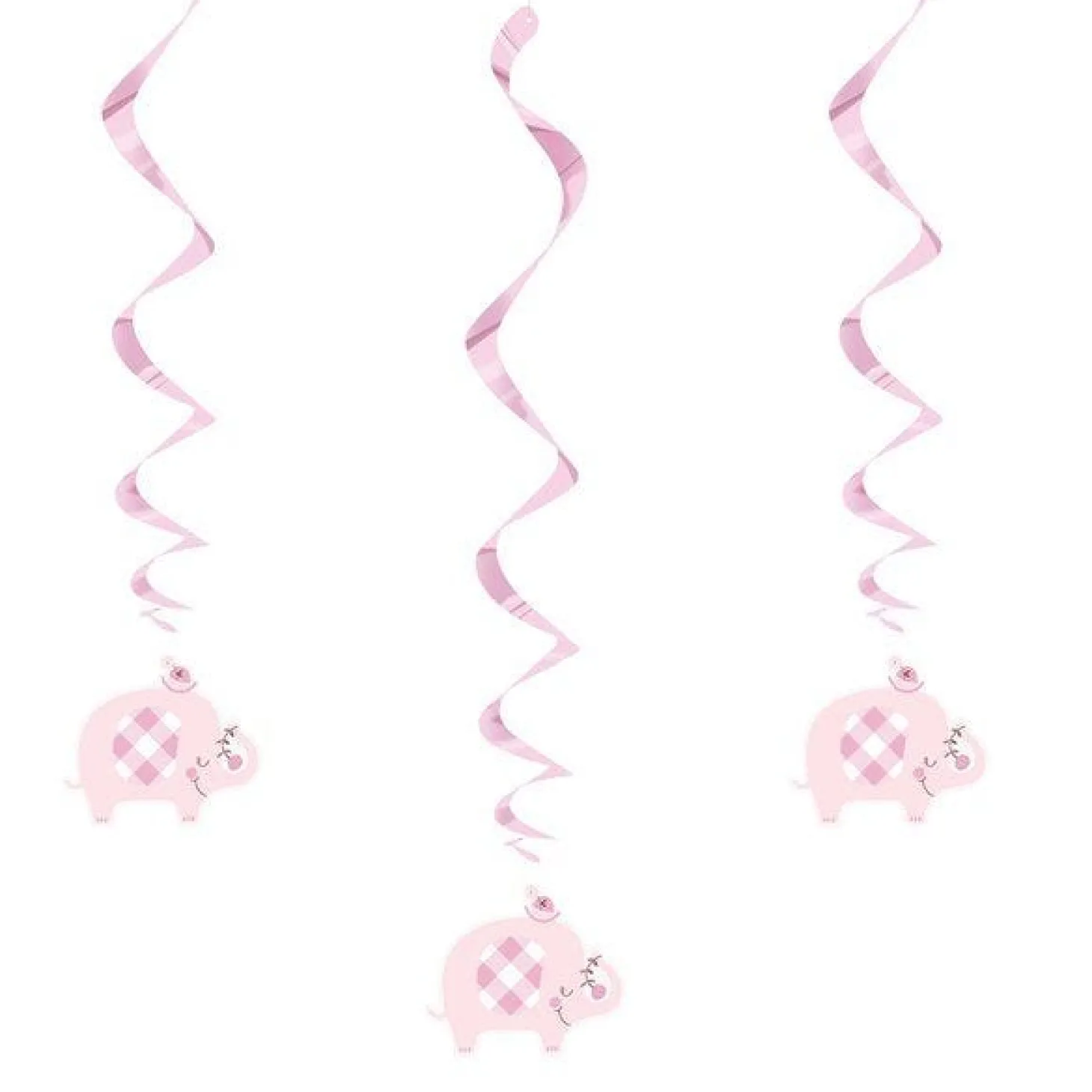 Pink Floral Elephant Hanging Swirl Decorations – 66Cm (3Pk)