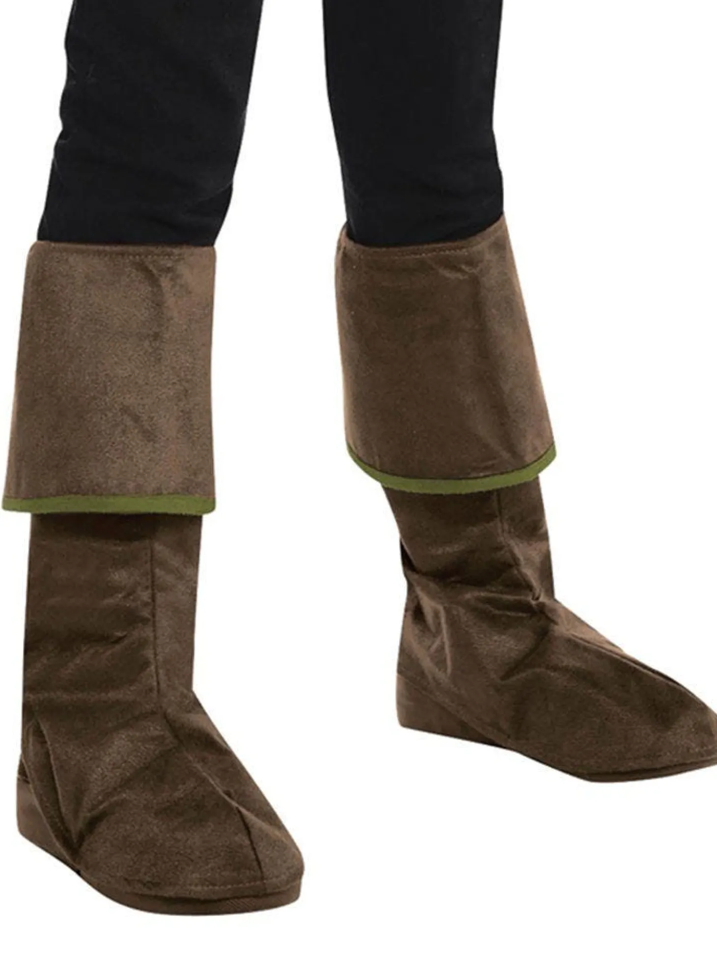 Your Little Prince Will Look Like He’s Just Stepped Out Of Sherwood Forest In This Five Piece Archer Costume. Just Like Robin Hood, He’Ll Look Handsome In The Hooded Shirt With Faux Leather Trim, A Lace Up Neckline And Chainmail Style Sleeves. There Are A Pair Of Suede Effect Glovelets And Boot Covers, As Well As An Adjustable Belt And Over-The-Shoulder Quiver. A Great Costume For World Book Day.