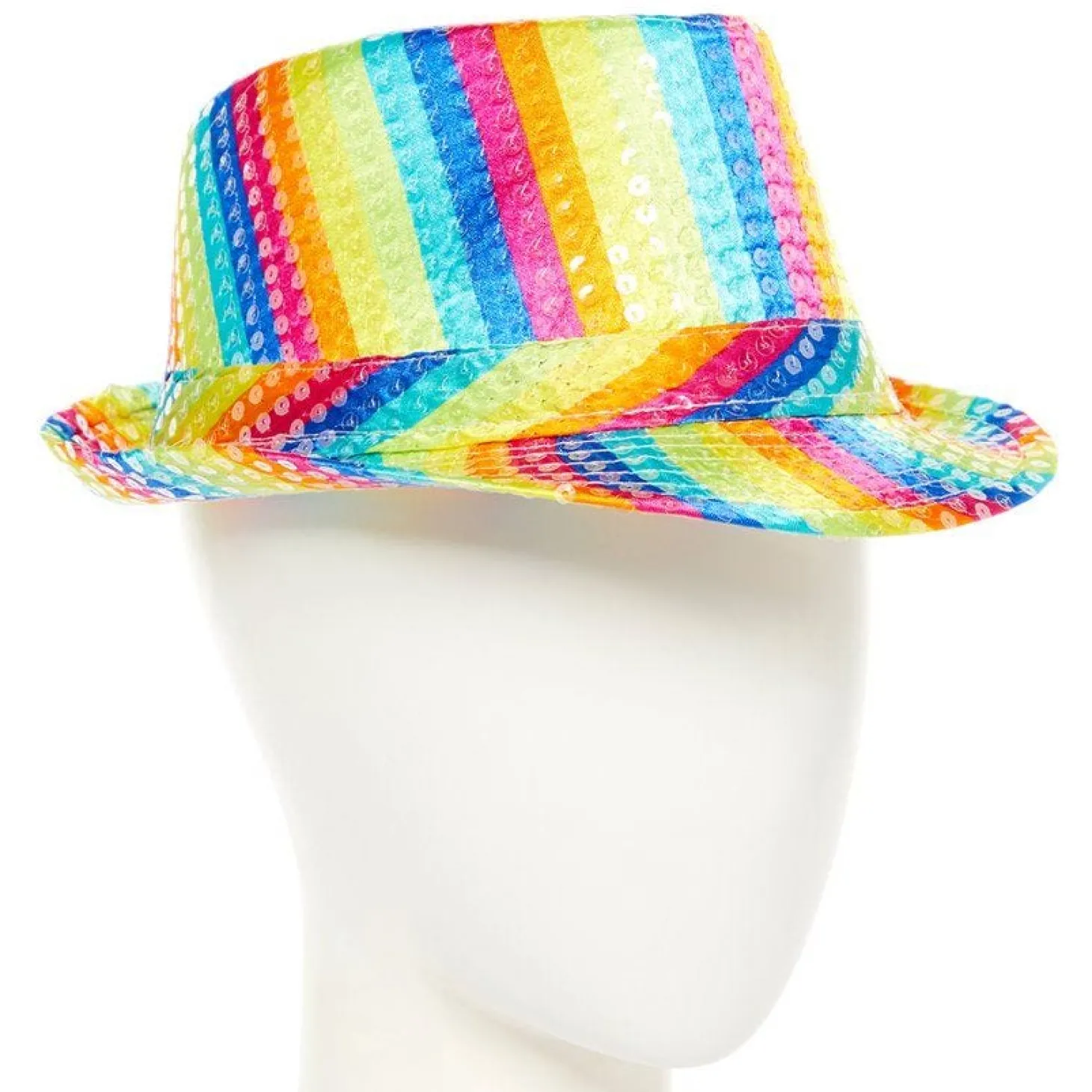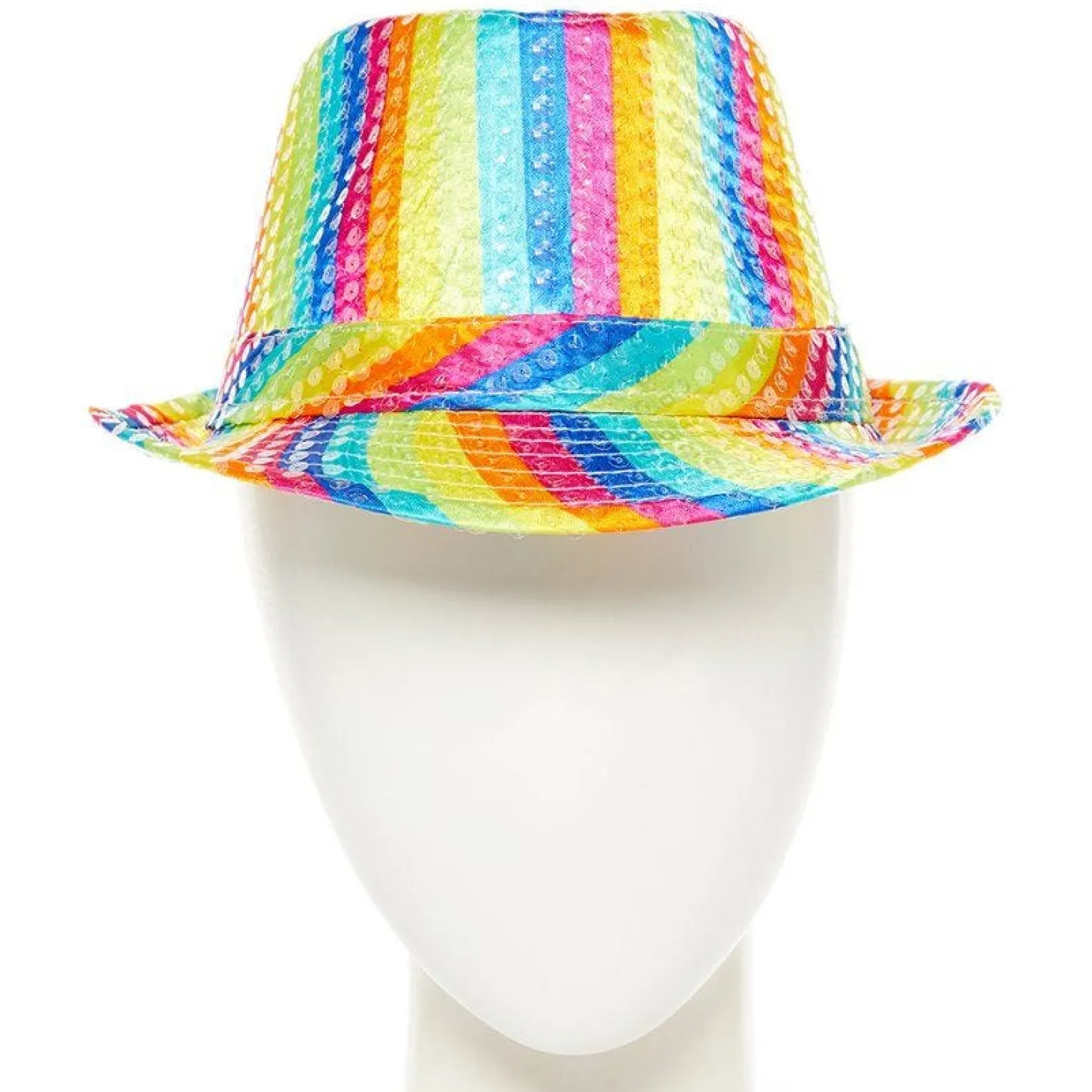 This Sequin Fedora Hat Is The Perfect Accessory When You Want To Make A Colourful Statement – Great As Festival Headwear! With Its All Over Sequin Decoration And Bright Rainbow Colours This Unisex Fedora Hat Will Certianly Colour Your World!