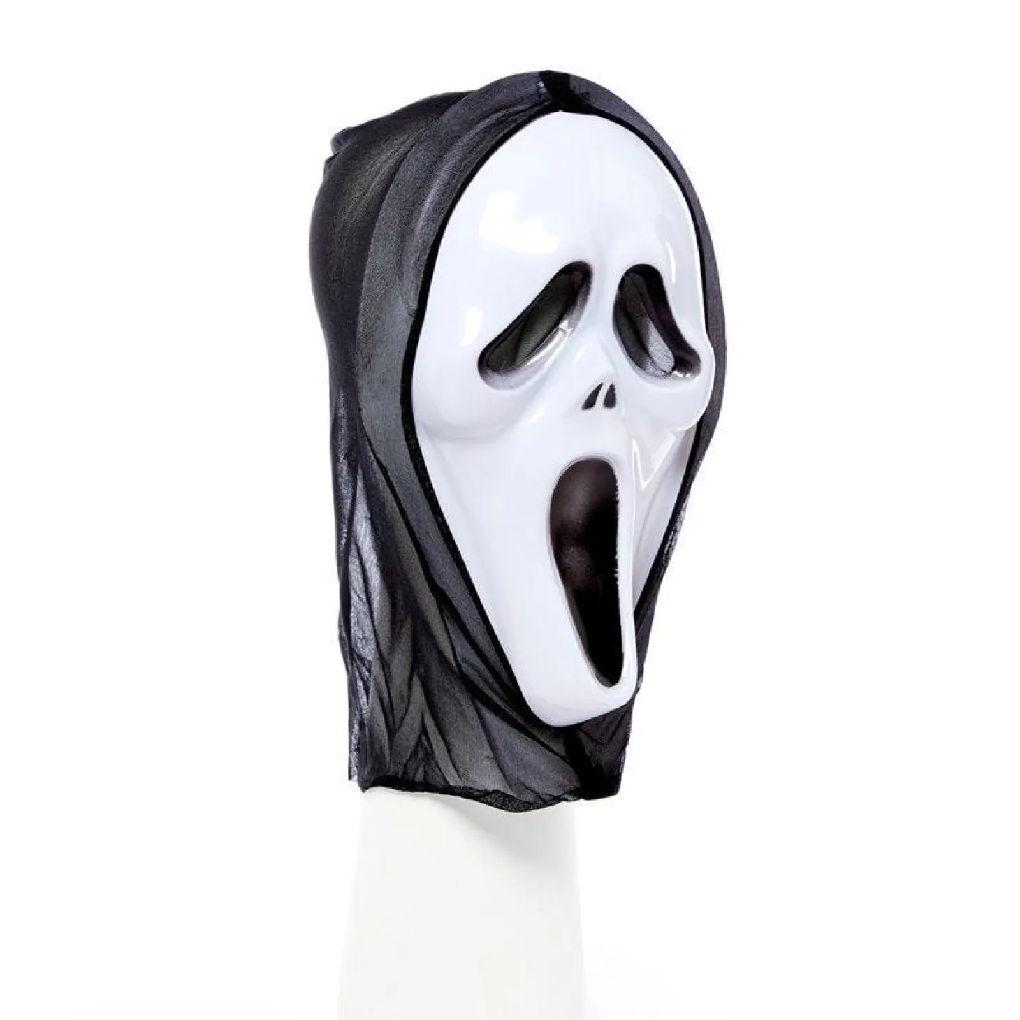 This Scream Face Mask Features The Movie Slasher’s Signature Open Mouth Expression And Comes With An Attached Black Hood.