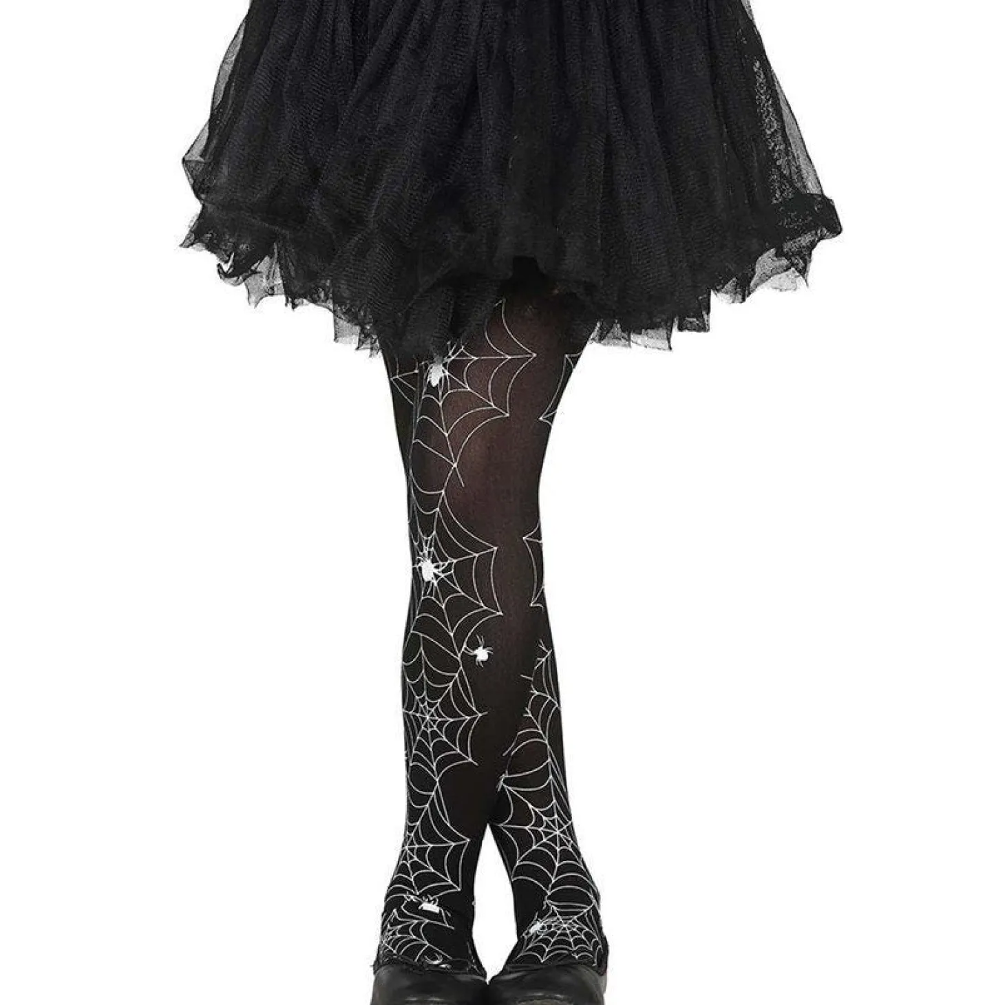 Step Into Spooky Season With These Spiderweb Patterned Tights. The Black Opaque Tights Have White Spiderweb Detailing To Bring That Halloween Feel To Your Child’s Outfit.