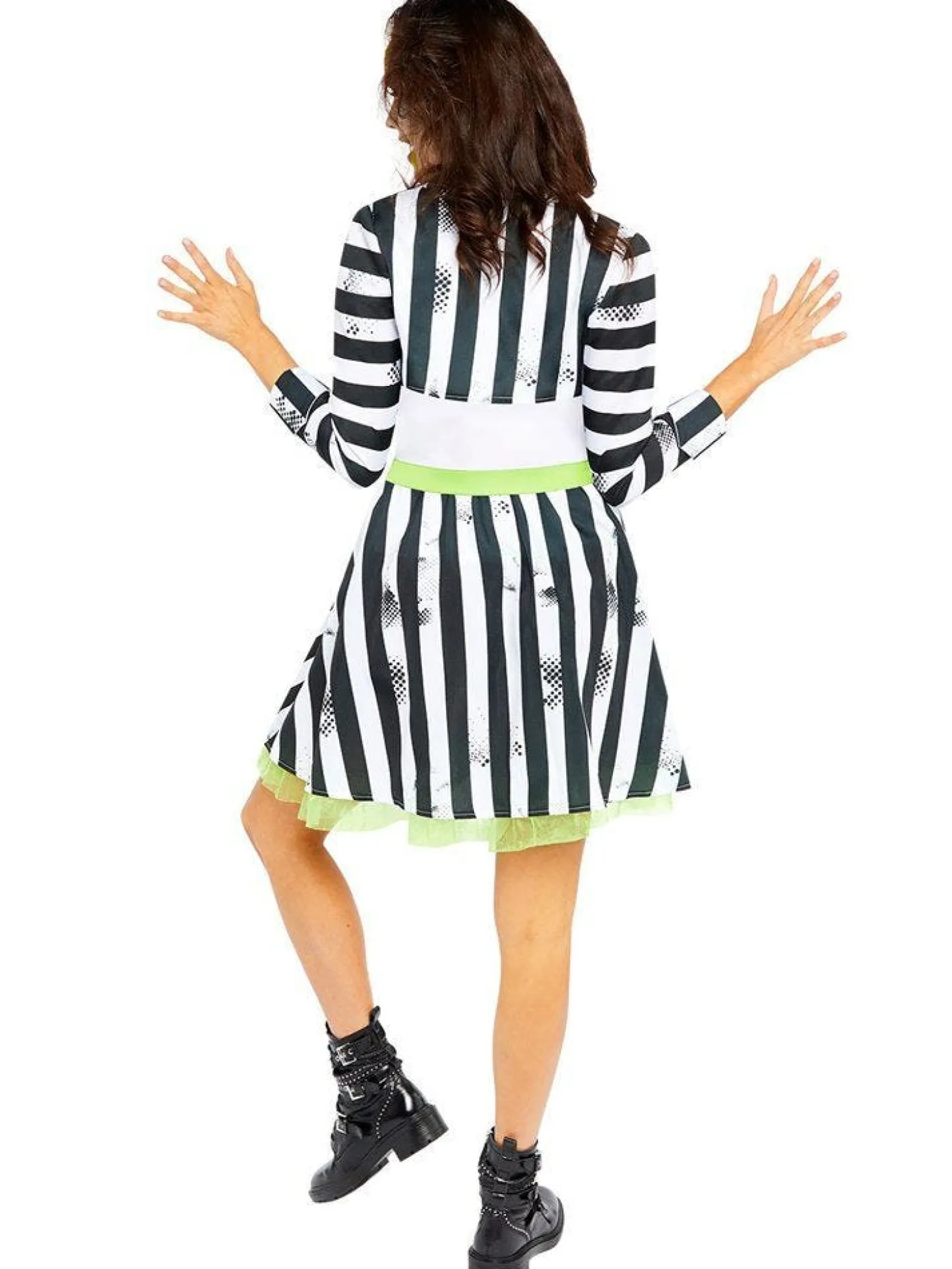 For A Feminine Twist To The Ghoulish Beetlejuice Look, This Officially Licensed Costume Features A Striped And Distressed-Effect Dress With A Matching Cropped Suit Jacket.
