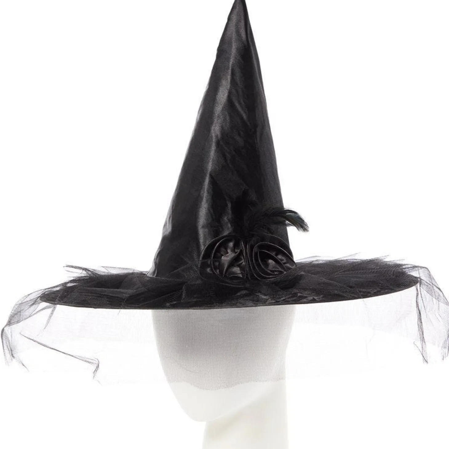 Want Your Witch Hat To Stand Out From The Rest? A Classic Pointed Black Hat With An Eye-Catching Black Flower, Feathers And Veil, Now You’Re Ready To Cast Some Spooky Spells In Style! Height 35Cm