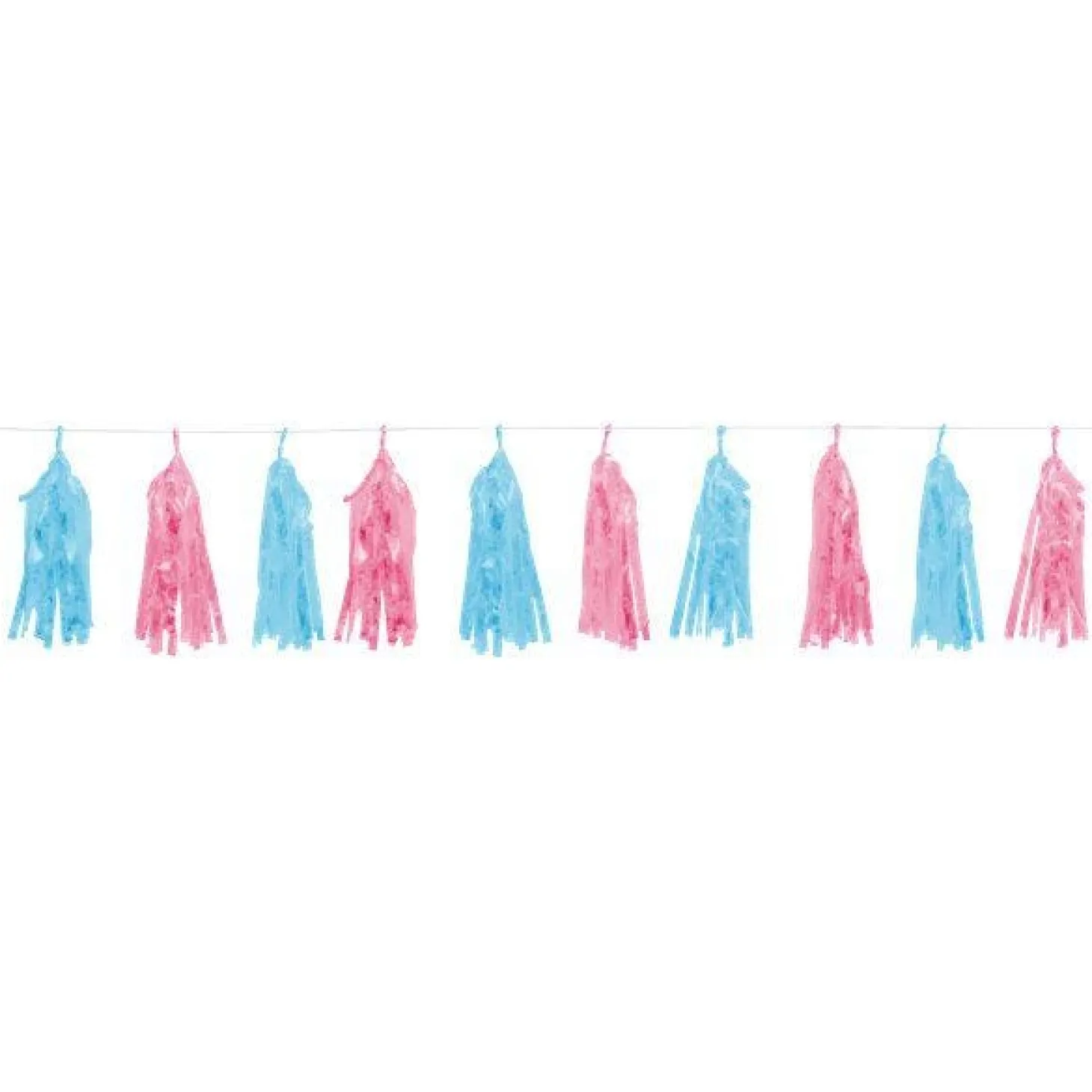 Blue & Pink Gender Reveal Foil Tassel Garland – 1.5M