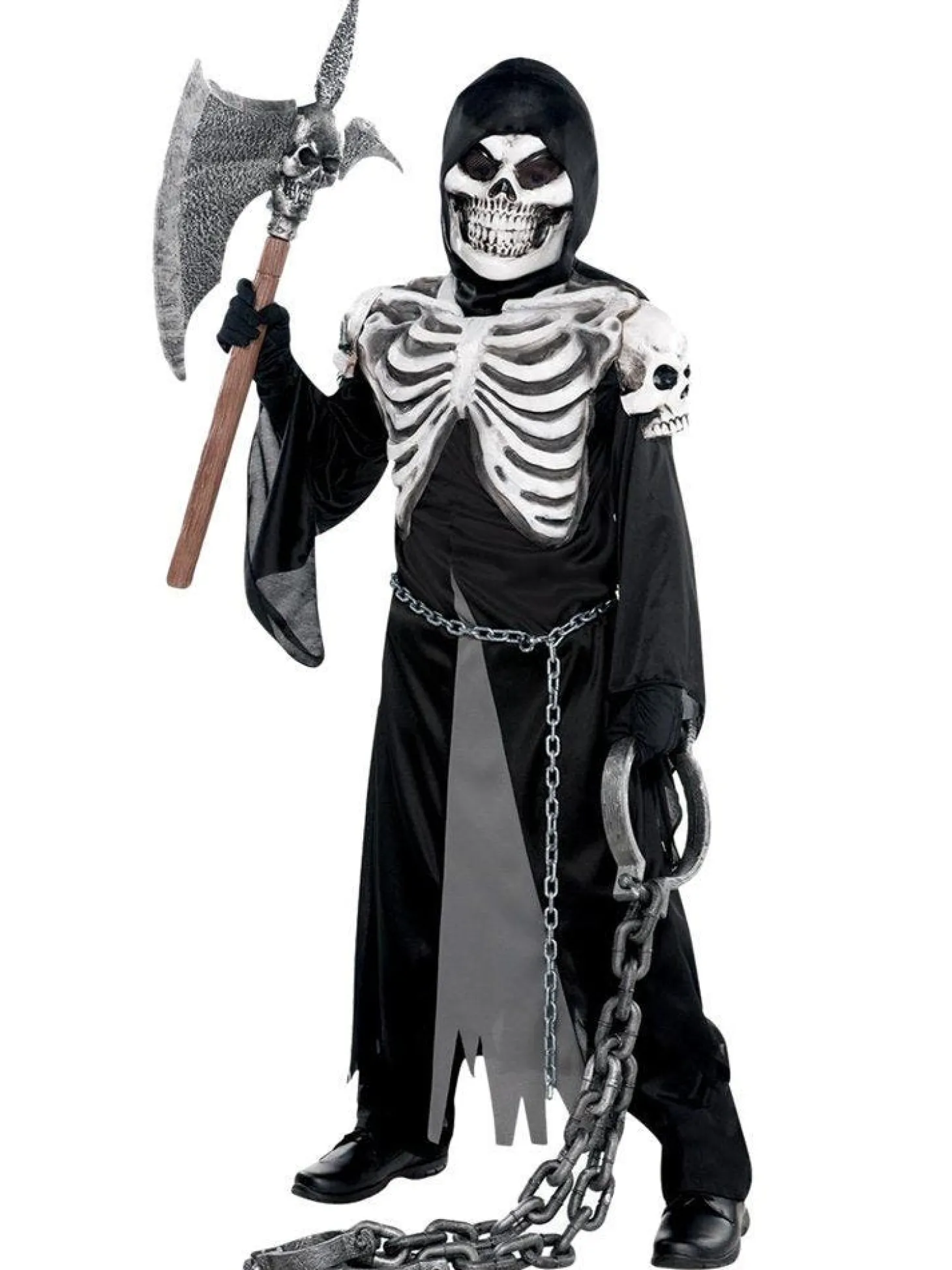 This Creepily Dramatic Crypt Keeper Costume Will Certainly Turn Some Heads With Its Dramatic Hooded Black Robe, Long Draping Sleeves And Torn Hem, Plastic Rib Cage And Skull Epaulettes.