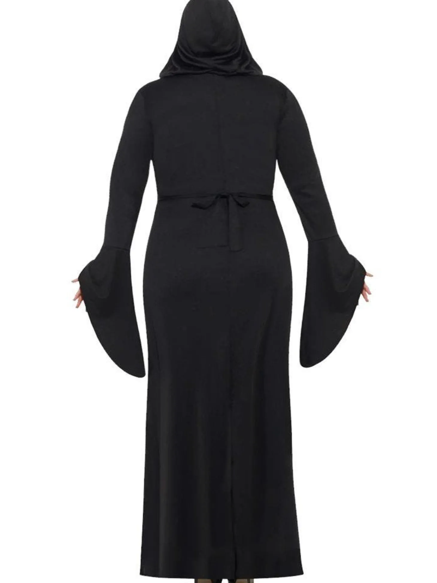 There Are Several Types Of Vampire Costume – This One Certainly Falls Into The Sexy Category! This Sumptuous Costume Features A Floor-Length Black Dress With A Large Red Front Detail, Red-Lined Hood And Draped Sleeves. Made Just For Curvy Bodies, This Dress Accentuates Your Beautiful Curves While Staying Flattering. Just Beware – You Might Have An Hypnotic Effect On Those Around You!