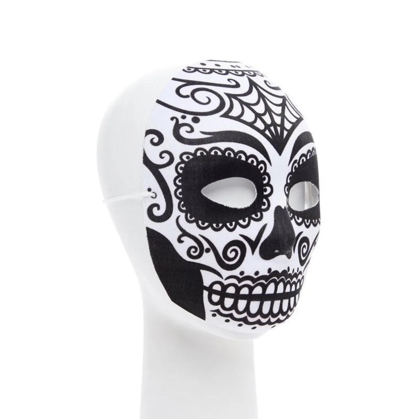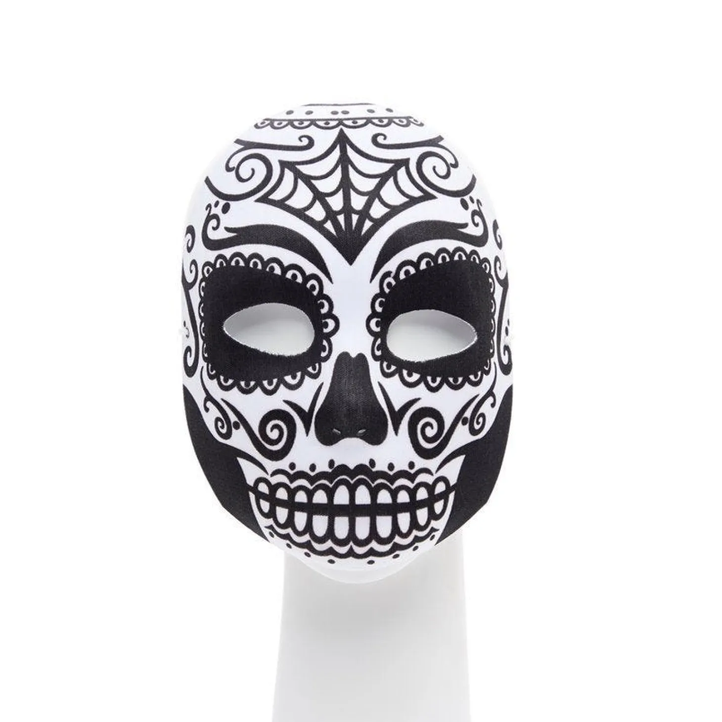 Give Your Day Of The Dead Themed Costume The Perfect Finishing Touch With This Sugar Skull Style Halloween Mask. The Intricate Design Includes Patterned Details Around The Hollow Eyes And Skeletal Jaw To Give Your Outfit A Sinister Look. This Plastic Mask Has A Ribbon Tie To Secure It To Your Face.