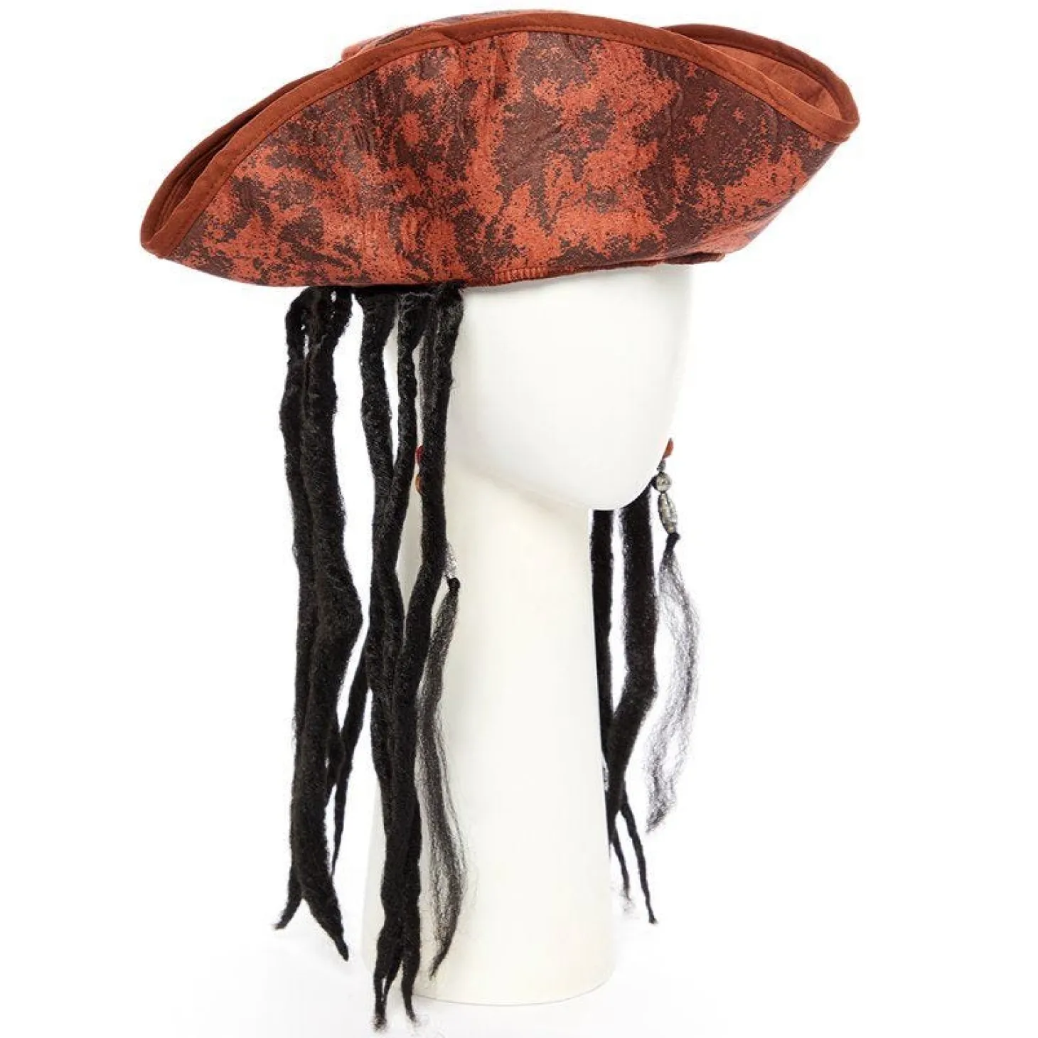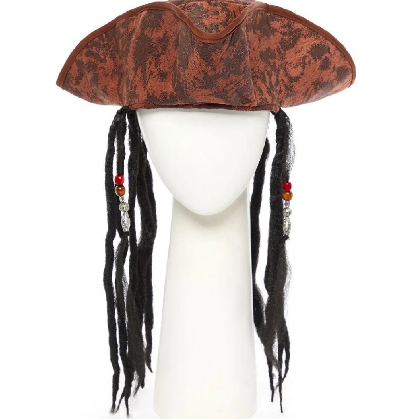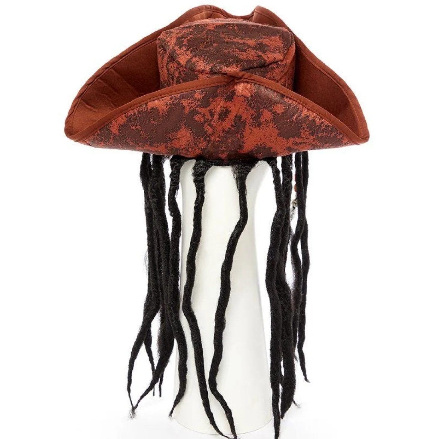 Just Like Captain Jack Sparrow, This Brown, Tricorn Pirate Hat Has Attached Long, Beaded Dreadlocks. Pull It On To Instantly Transform Into The Roguish Sea Captain, You’Re Sure To Gather All The Booty And Be The Envy Of All Your Pirate Mates. 100% Polyester