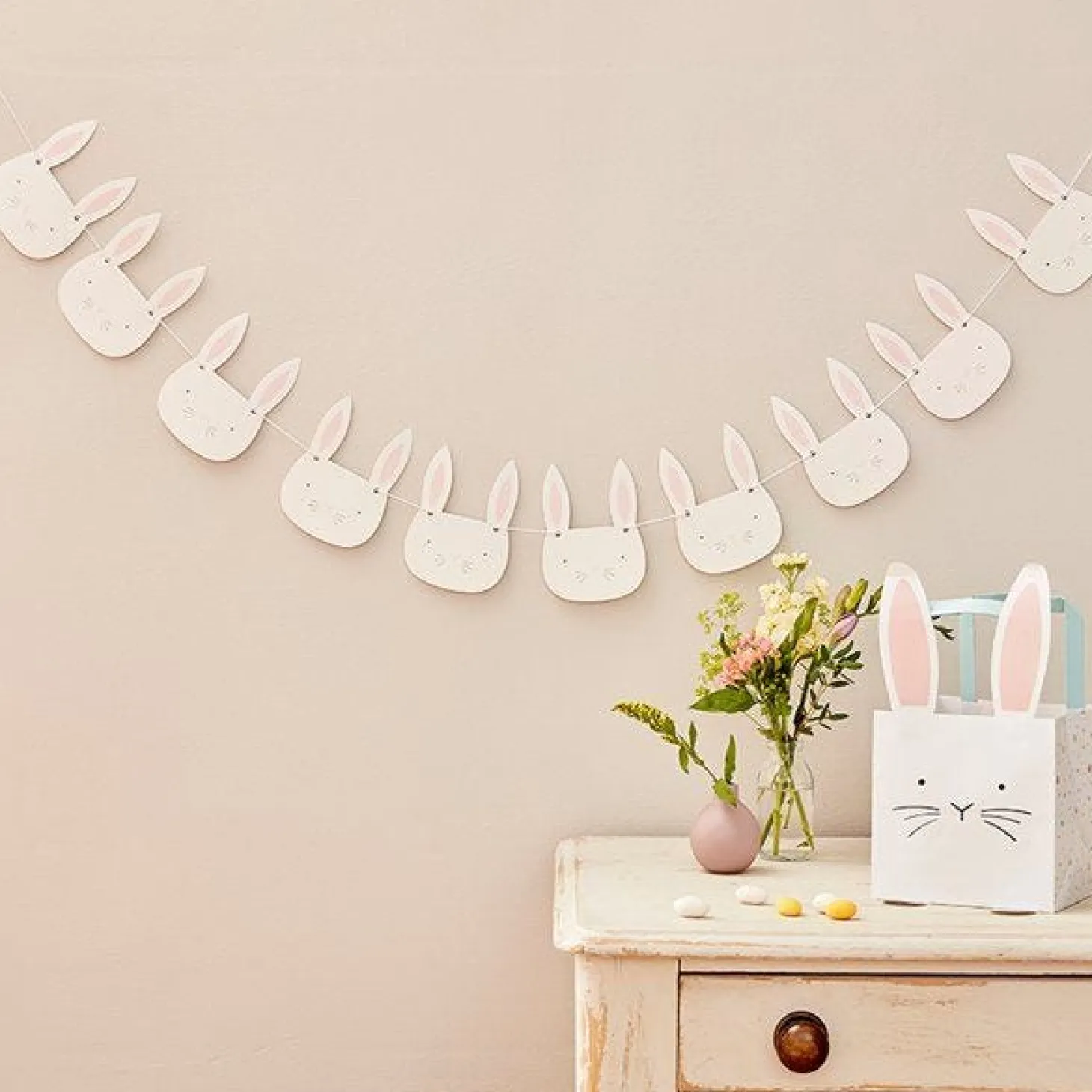 - 10 Bunny Faces On 2 Metres Of White Twine