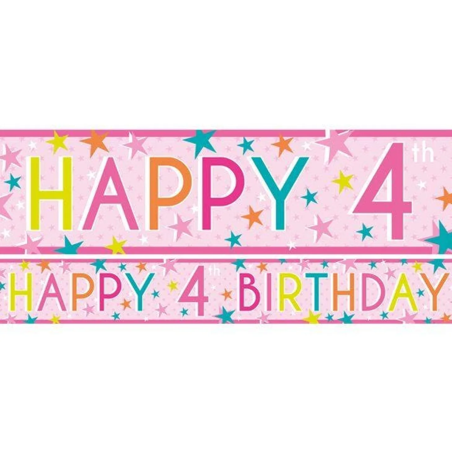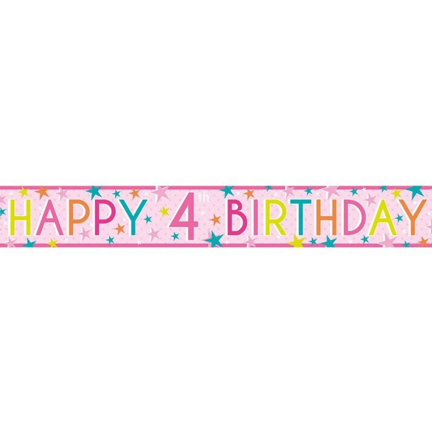 Girls 4Th Birthday Paper Banners – 1M (3Pk)