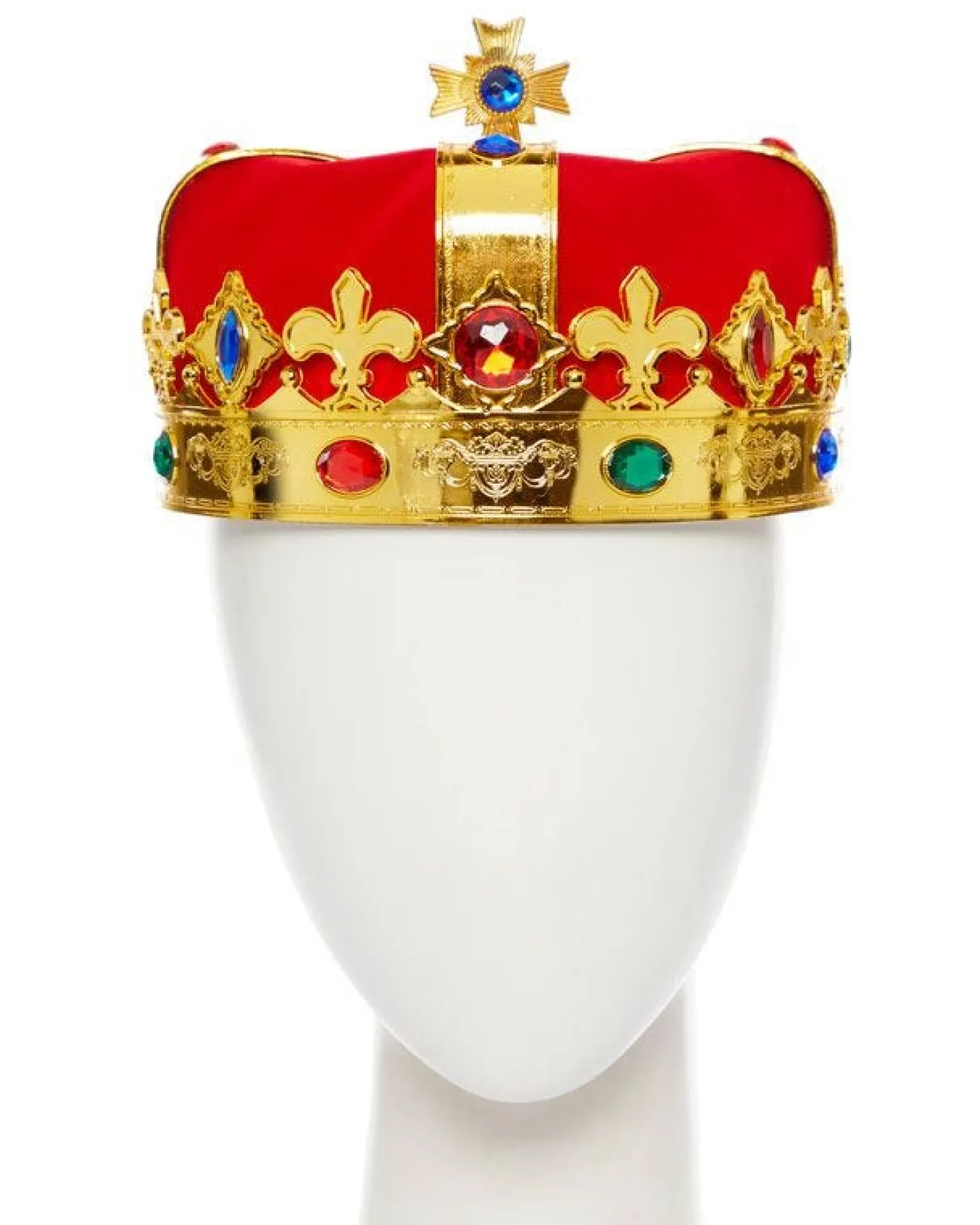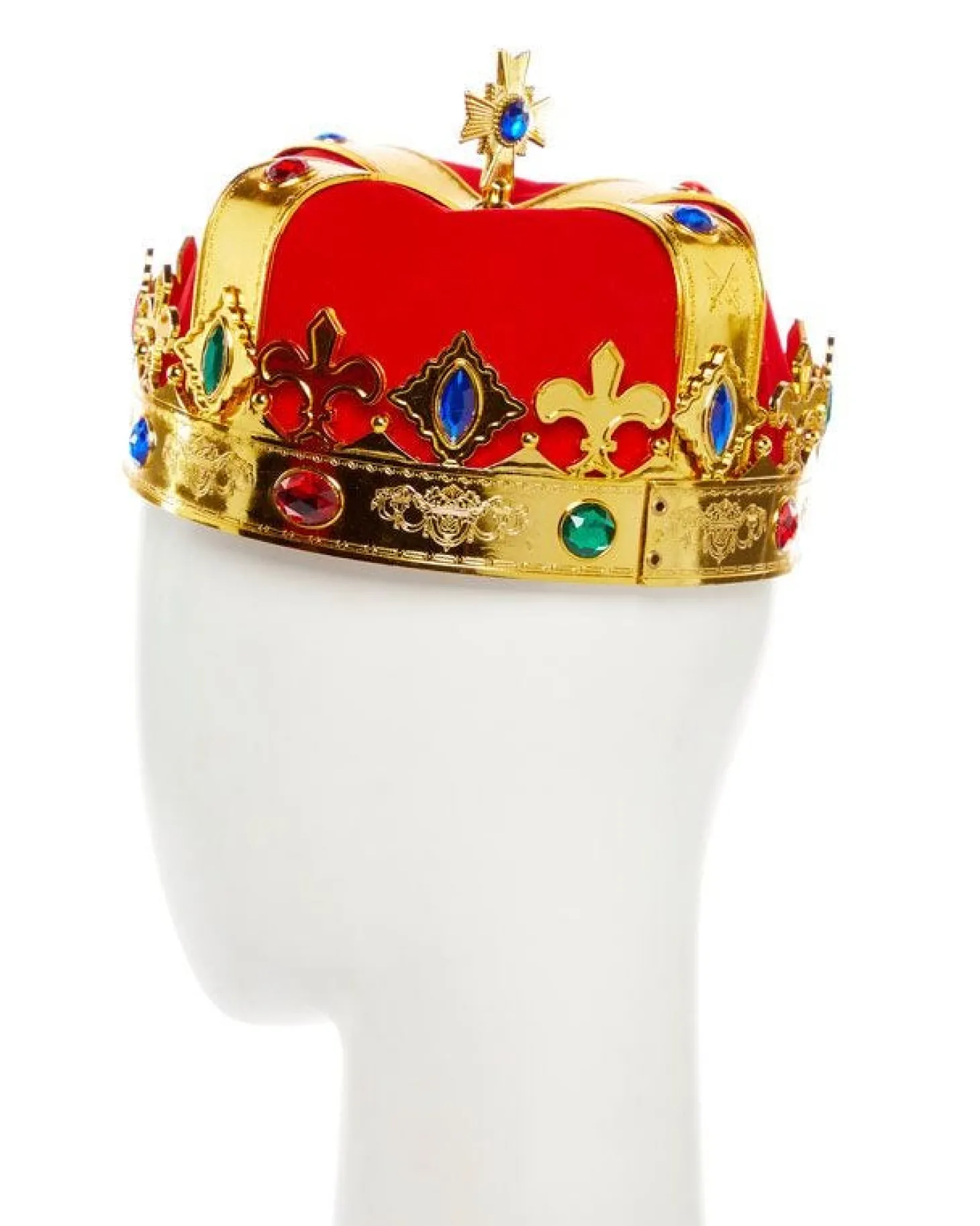 Turn Yourself Into A Royal King In This Irresistibly Stunning Jewelled King’s Crown Costume Accessory. The Crown Is Made From Gold Plastic And Red Velour And Boasts Coloured Faux Jewel Decoration Throughout. Perfect For A Royal Or British Themed Fancy Dress Party Where You Want To Look Delightfully Regal!