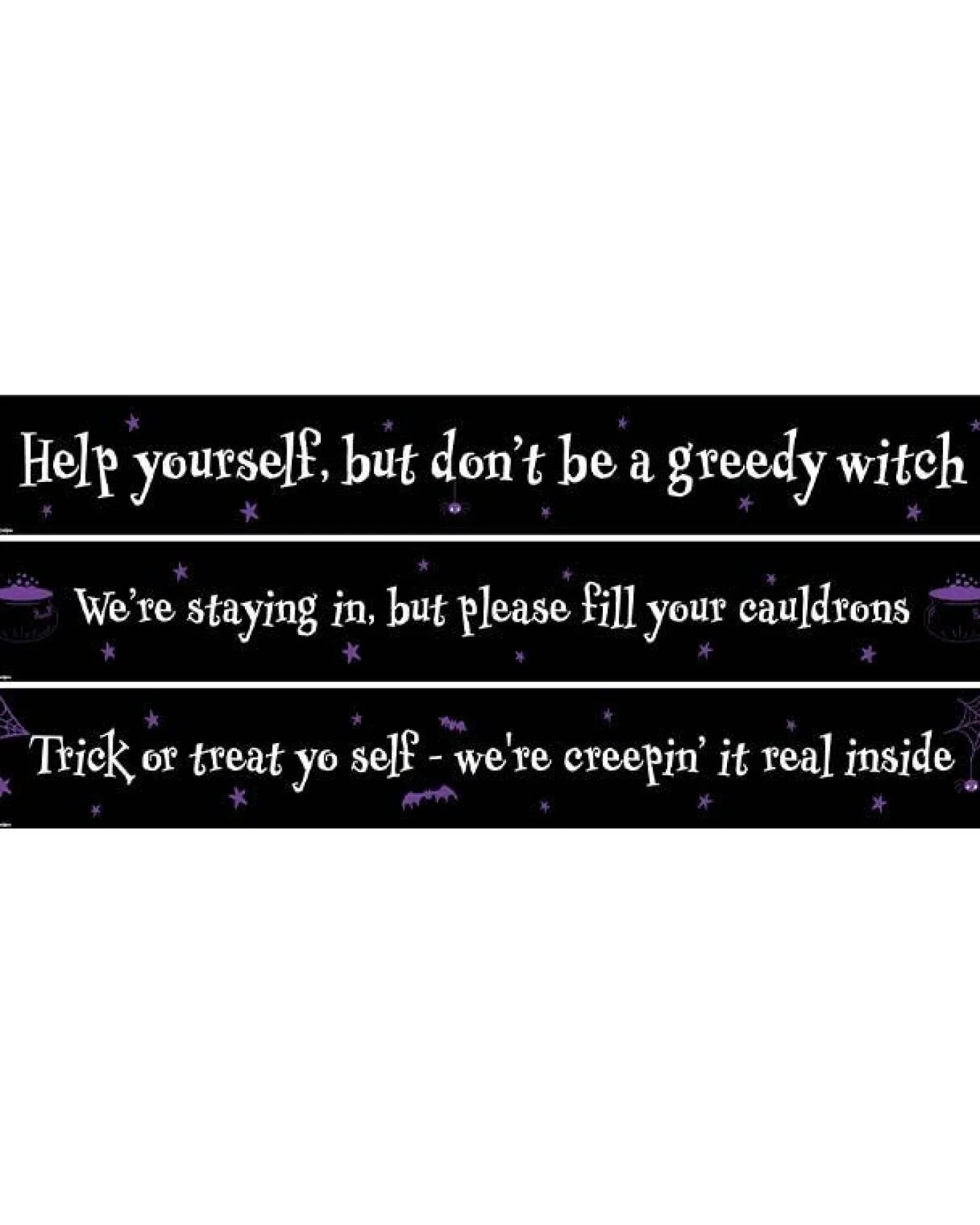 - 1 X Banner With ‘Help Yourself, But Dont Be A Greedy Witch’ Message