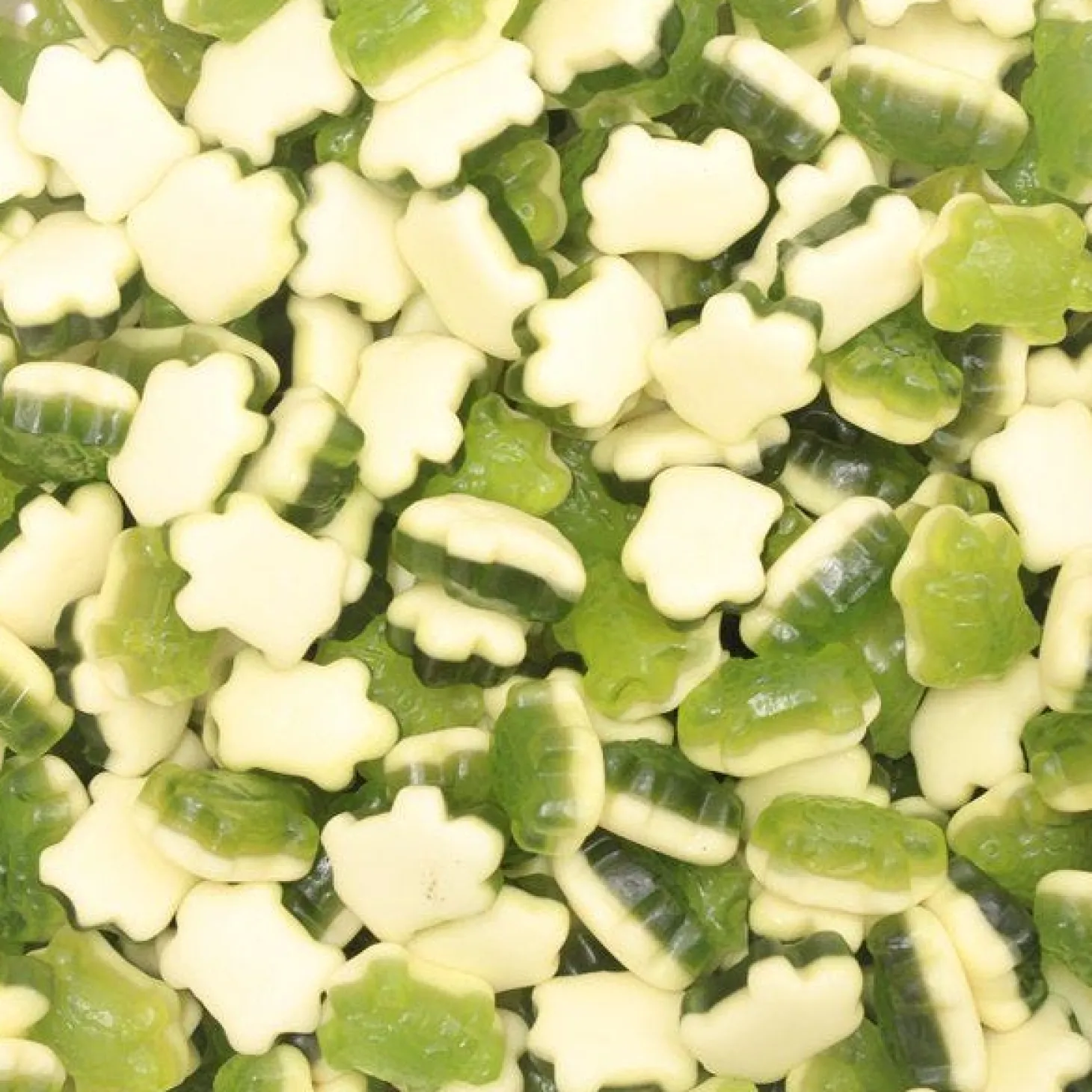 Ingredients: Glucose Syrup; Sugar; Gelatine; Dextrose; Acid: Citric Acid; Flavouring; Fruit And Plant Concentrates: Apple, Kiwi, Lemon, Radish, Safflower, Spirulina; Glazing Agents: Beeswax, Carnauba Wax; Invert Sugar Syrup. Nutritional Information – Typical Values Per 100G; 1466Kj/345Kcal; Fat: 0.5G; Of Which Saturates: 0.1G; Carbohydrate: 79G; Of Which Sugars: 53G; Protein: 5.8G; Salt: 0.02G.