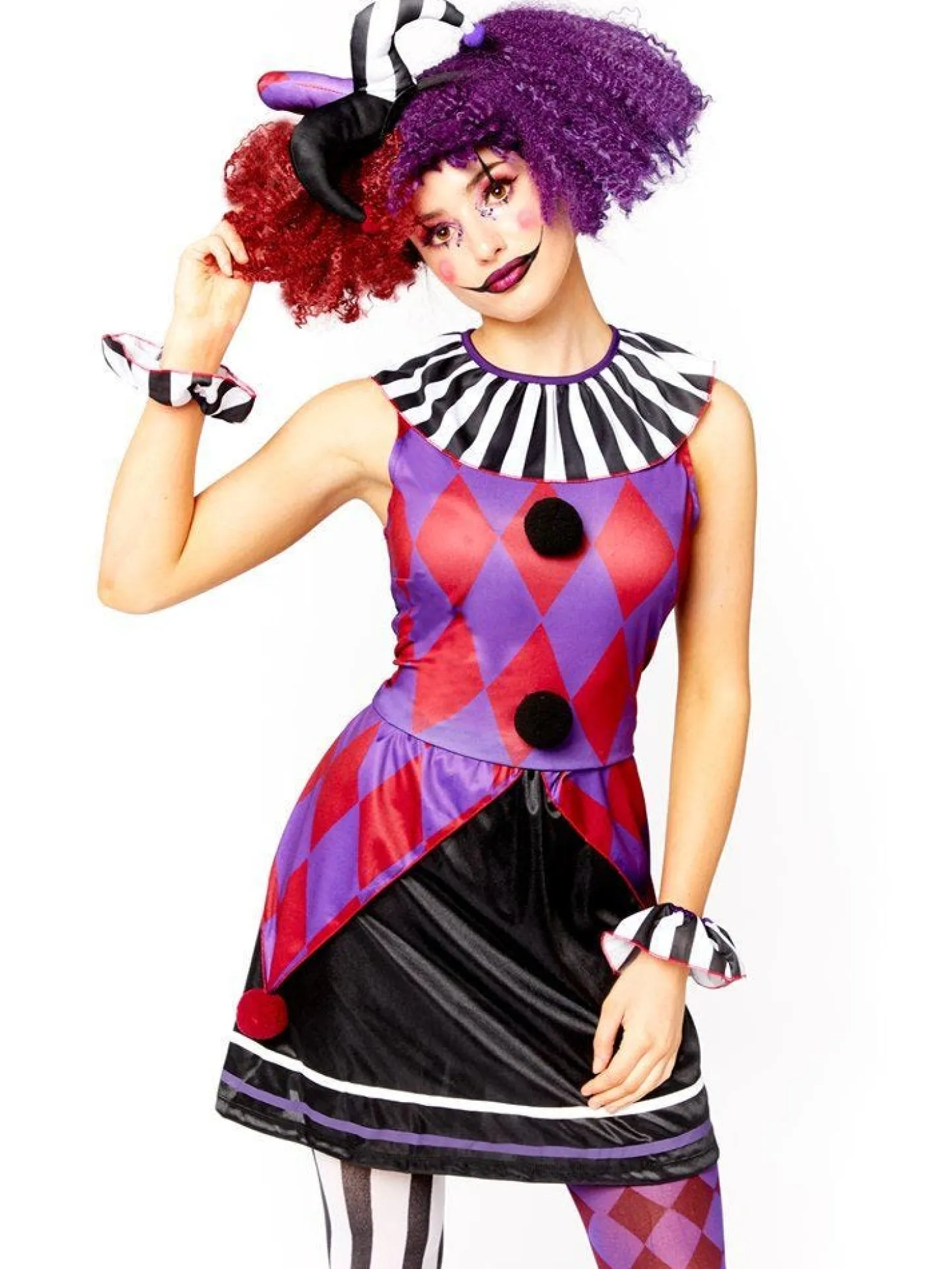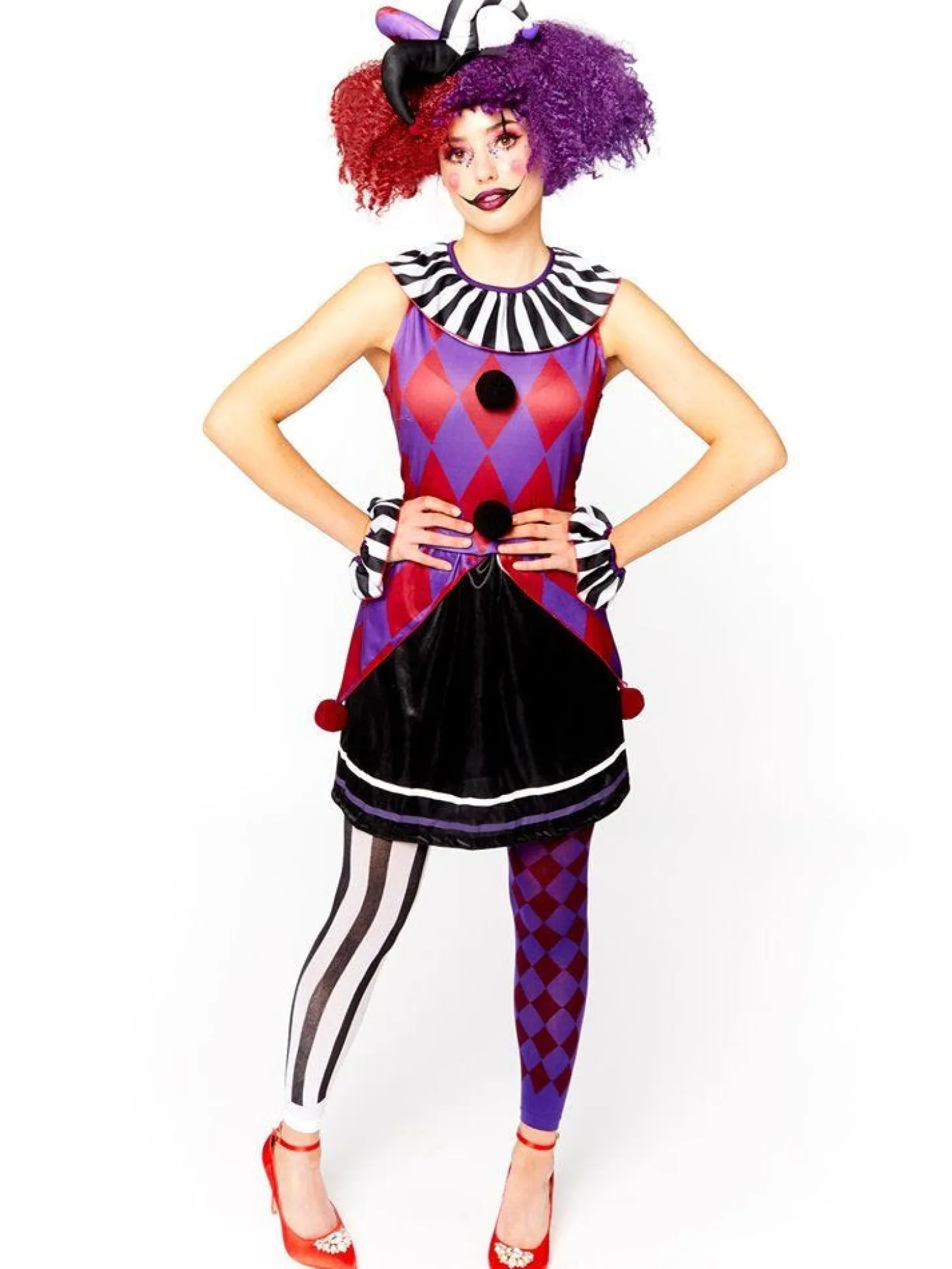 This Beautiful Patterned Harlequin Outfit Is The Perfect Choice For Women This Halloween! As Well As A Pretty Dress, There Are Also Tights And Wrist Cuffs And Headpiece To Add To The Spooky Circus Theme.