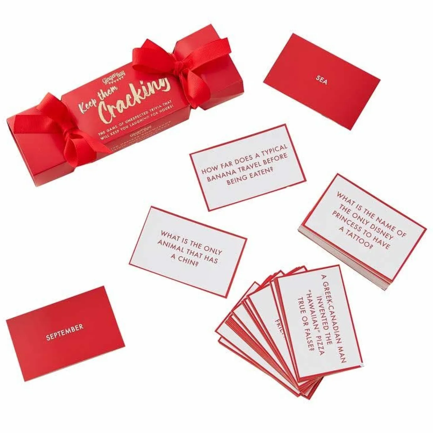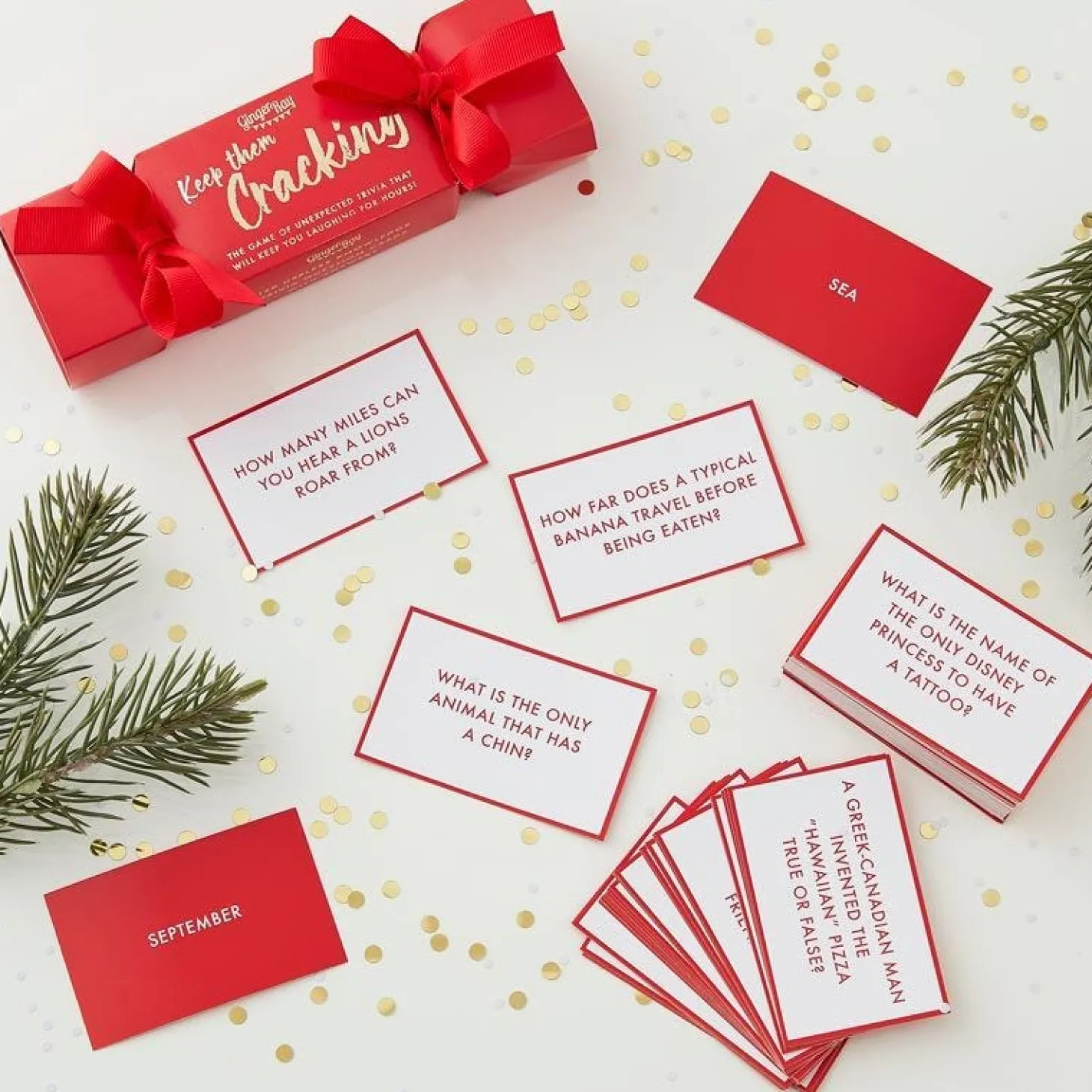 The Game Of Unexpected Trivia That Will Keep You Laughing For Hours. This Fun Game Is Full Of Questions That Will Make You Wonder How On Earth The Other Players Know The Answers Such As How Many Miles Can You Hear A Lions Roar From? And What Is The Name Of The Only Disney Princess To Have A Tattoo?This Trivia Game Is Packed With Questions Suitable For Players 16+ And Will Be So Much Fun To Bring Out Year After Year. The Stunning Festive Design Will Match Any Christmas Theme And Will Make This Perfect Fun Stocking Filler.Each Game Measures 18Cm (W) X 5.5Cm (H).