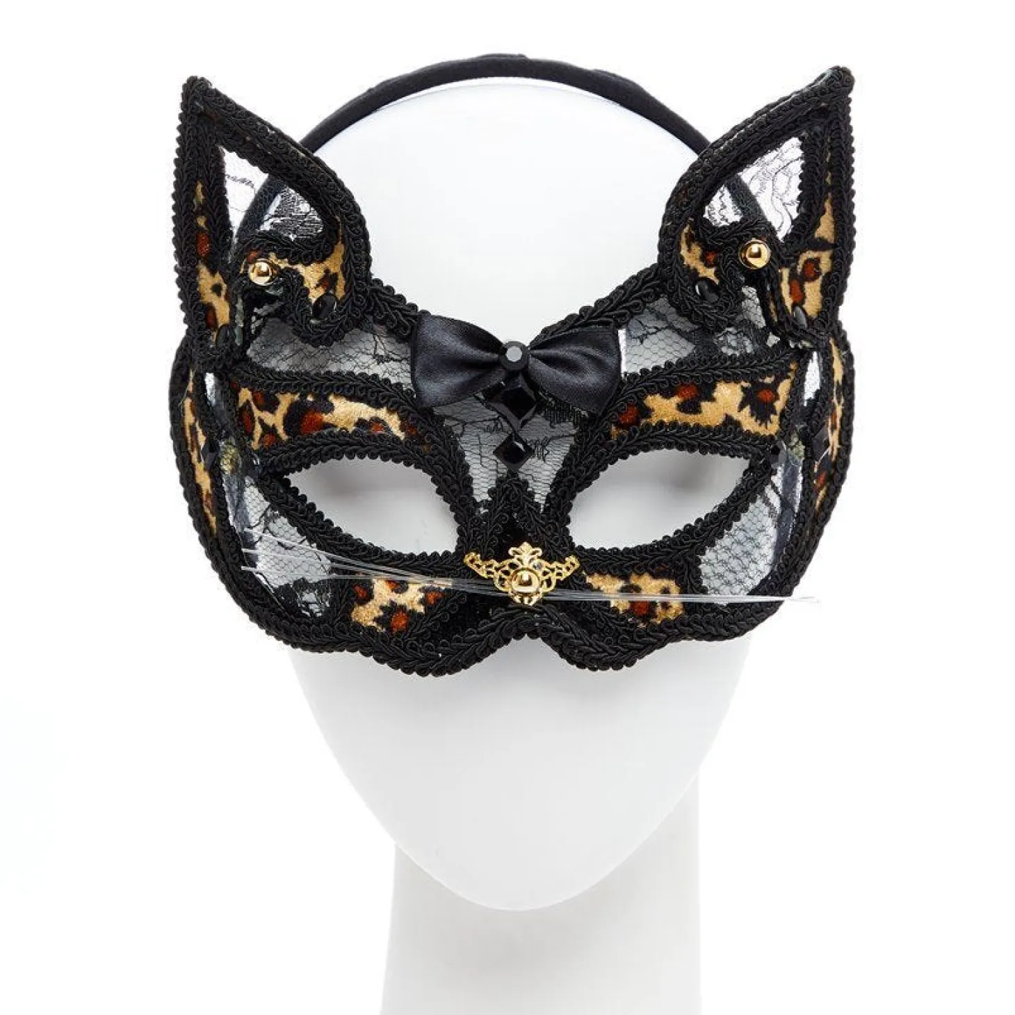 Add A Bit Of Individuality To Your Masquerade Party Outfit With This Pretty Feline Shaped Mask. Combining Sections Of Black Lace And Leopard Print, This Delicate Mask Features Pointed Cat Ears And Wiry Whiskers. It’D Make A Great Addition To Halloween Costumes Too.