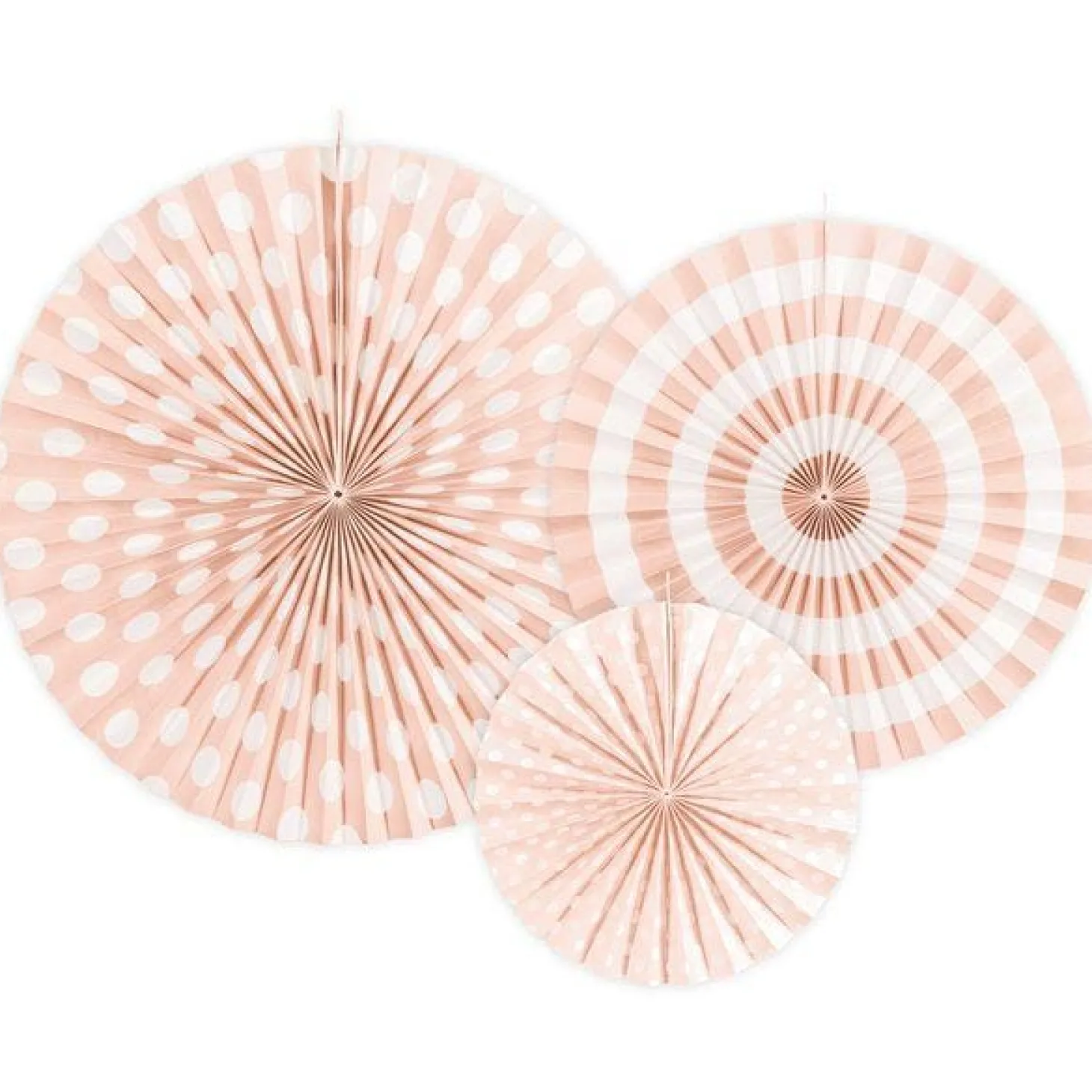 Light Pink Paper Fans, Pack Of 3 Different Sizes, Diameters. 23 Cm, 32 Cm And 40 Cm.