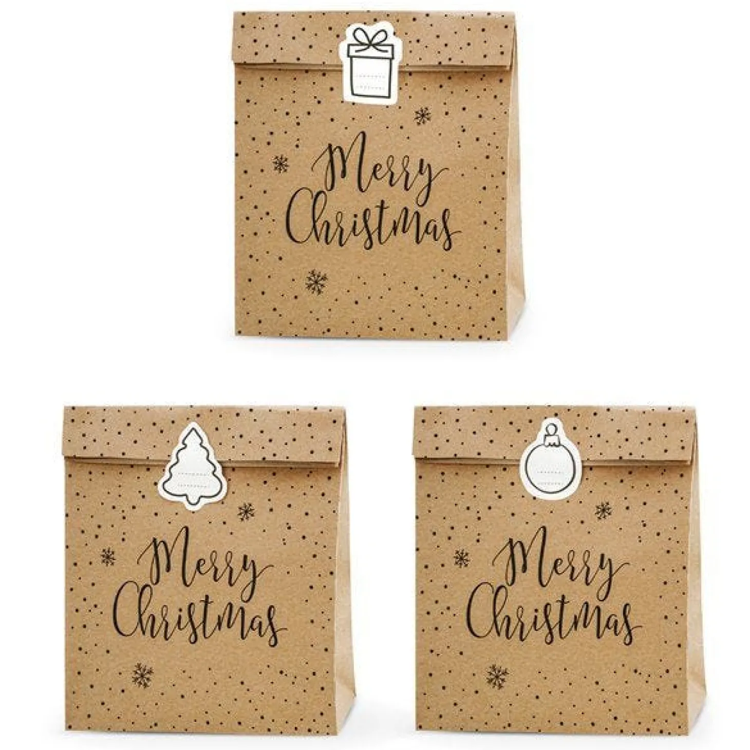 Merry Christmas Kraft Gift Bags – 27Cm (3Pk)