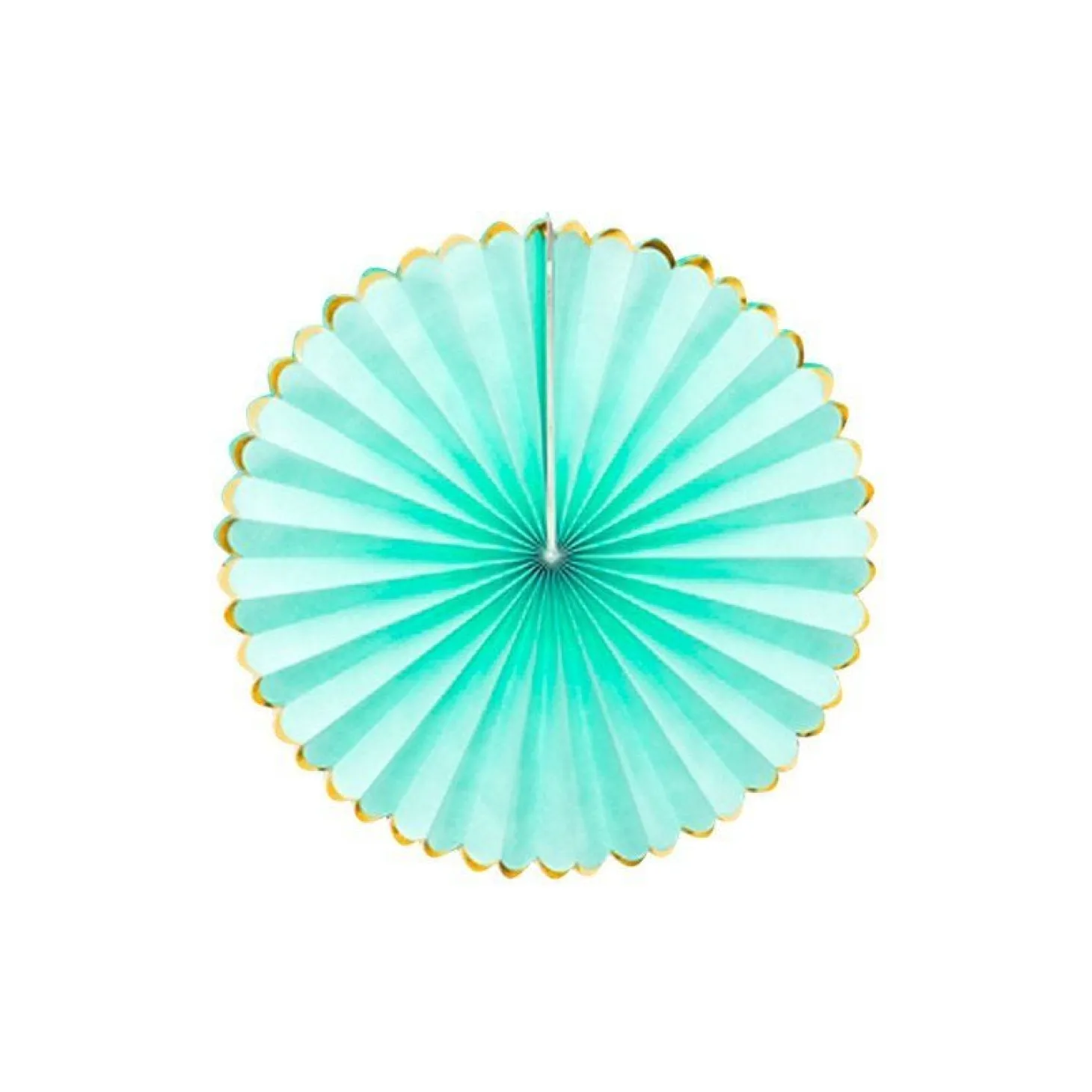 Mint Green & Gold Paper Fans, Pack Of 3 Different Sizes, Diameters After Assembling Approx. 23 Cm, 32 Cm And 40 Cm.