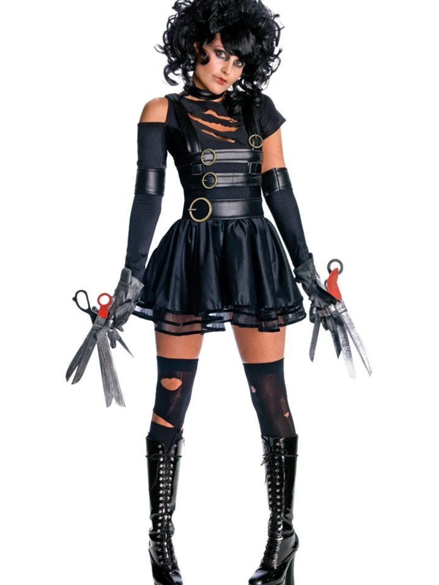 Dress With Attached Sleeve, Sleevelet, Scissor Gloves, Wig, Choker And Belt.