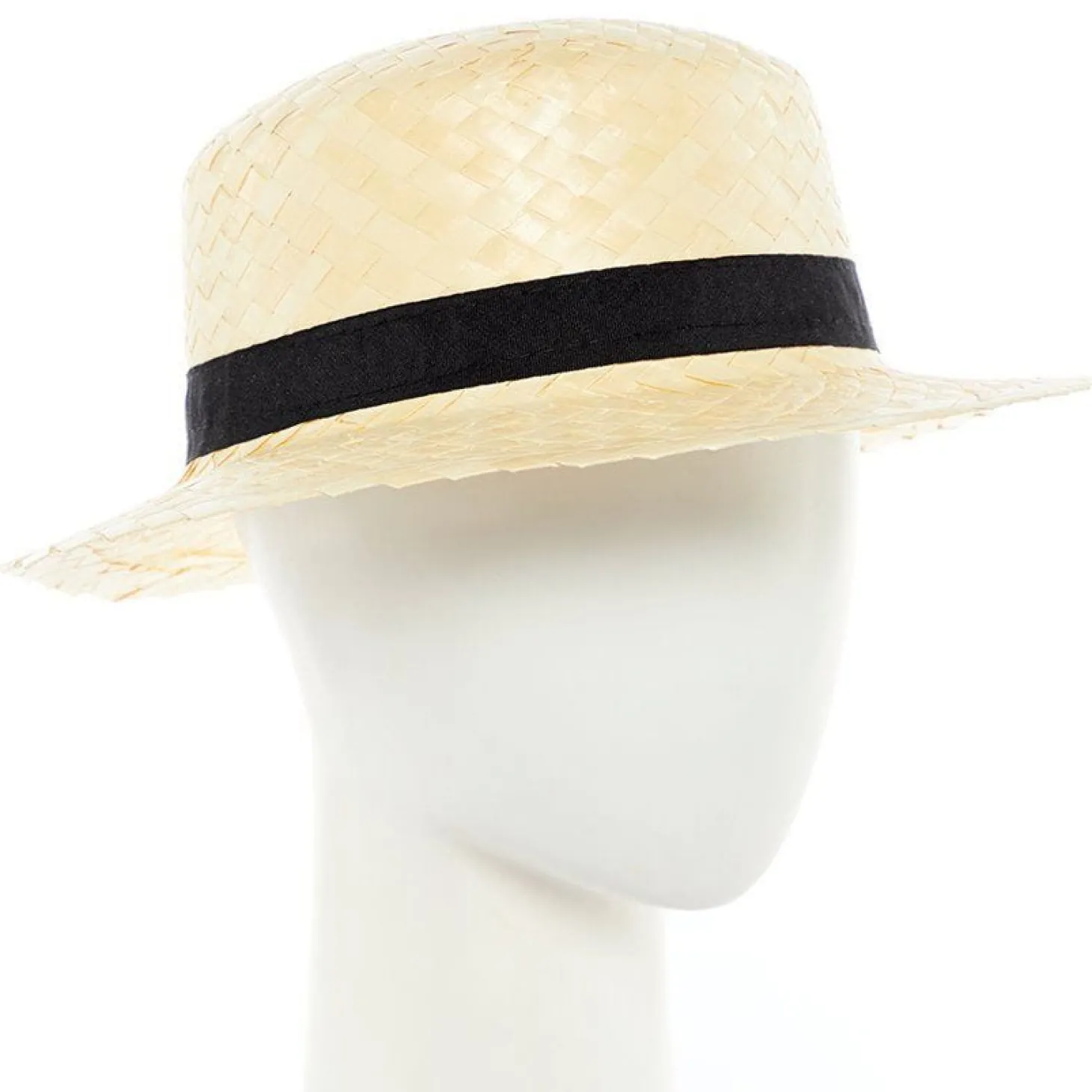 Add An Old School Touch To Your Outfit With This Straw Boater Hat. It Has A Black Band Around The Middle, Making It The Perfect Finishing Touch To A Vintage School Boy Or Girl Fancy Dress Costume.