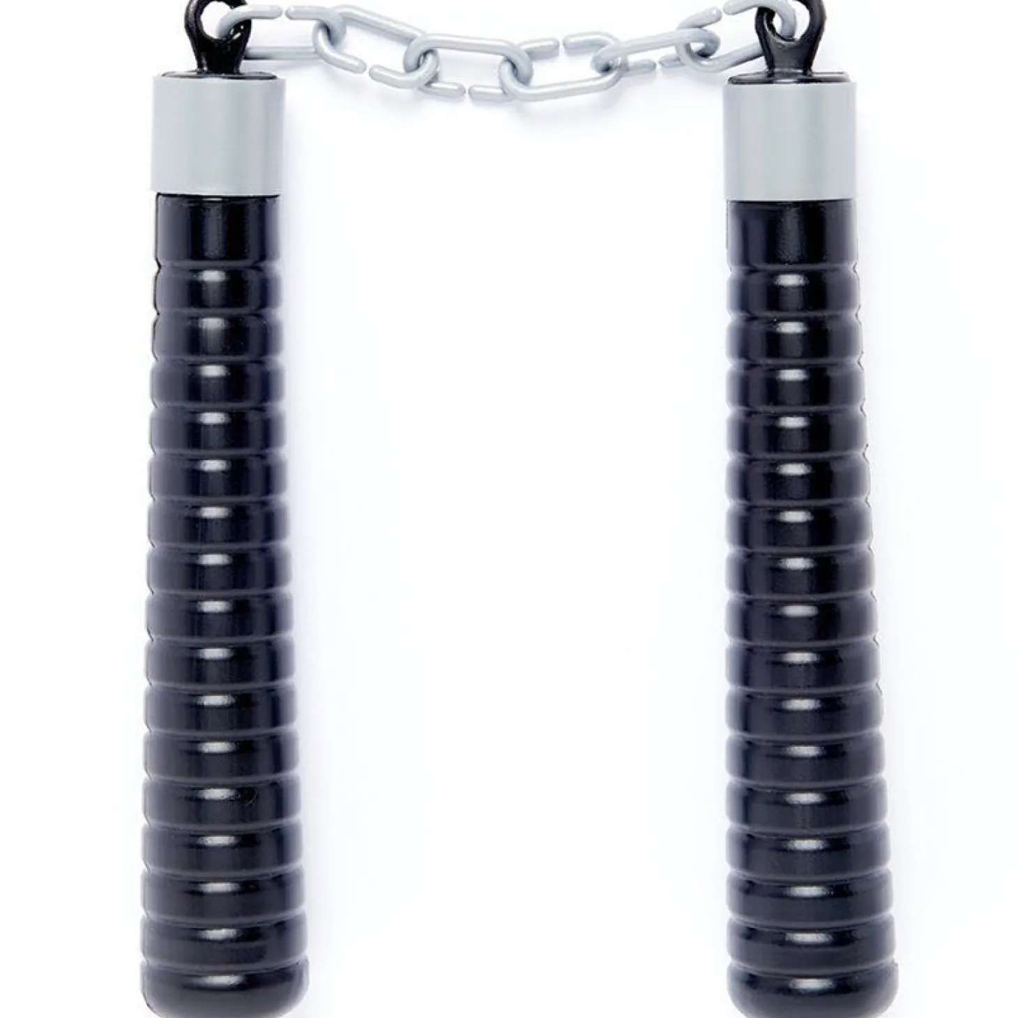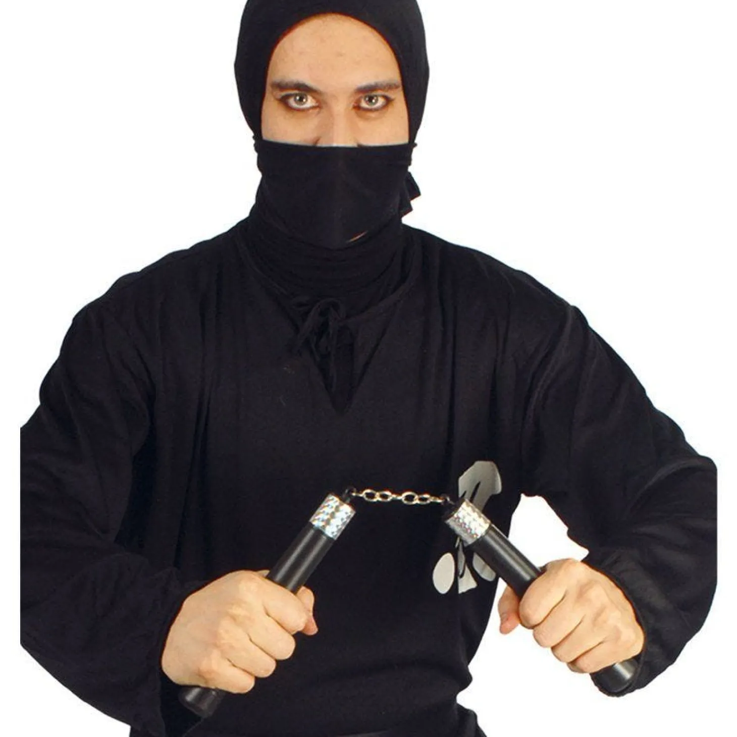 The Weapon Of Choice For Many Great Ninjas. Be A Fierce And Stealthy Ninja Warrior With These Awesome Addition To Your Ninja Costume. These Ninja Nunchucks Feature Black Plastic Handles And Have A Silver Plastic Chain Attaching Them Together.