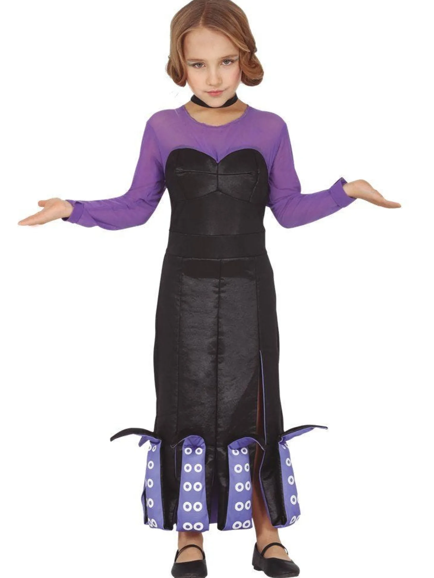 A Girlie Twist On The Classic Sea Witch, The Long Black Dress Ends In Upturned Purple Tentacles Which Match The Purple Sleeves. Add An Evil Cackle And They’Ll Be Stealing Voices Before You Know It!