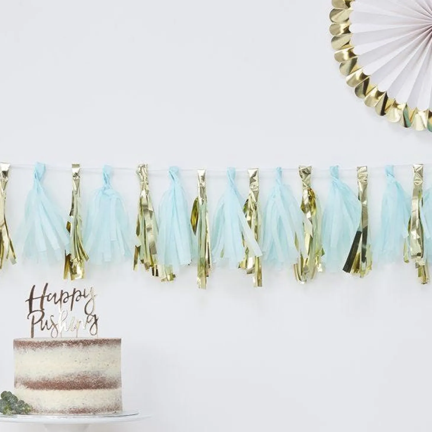 Oh Baby Blue & Gold Tassel Garland – 2M (16Pk)