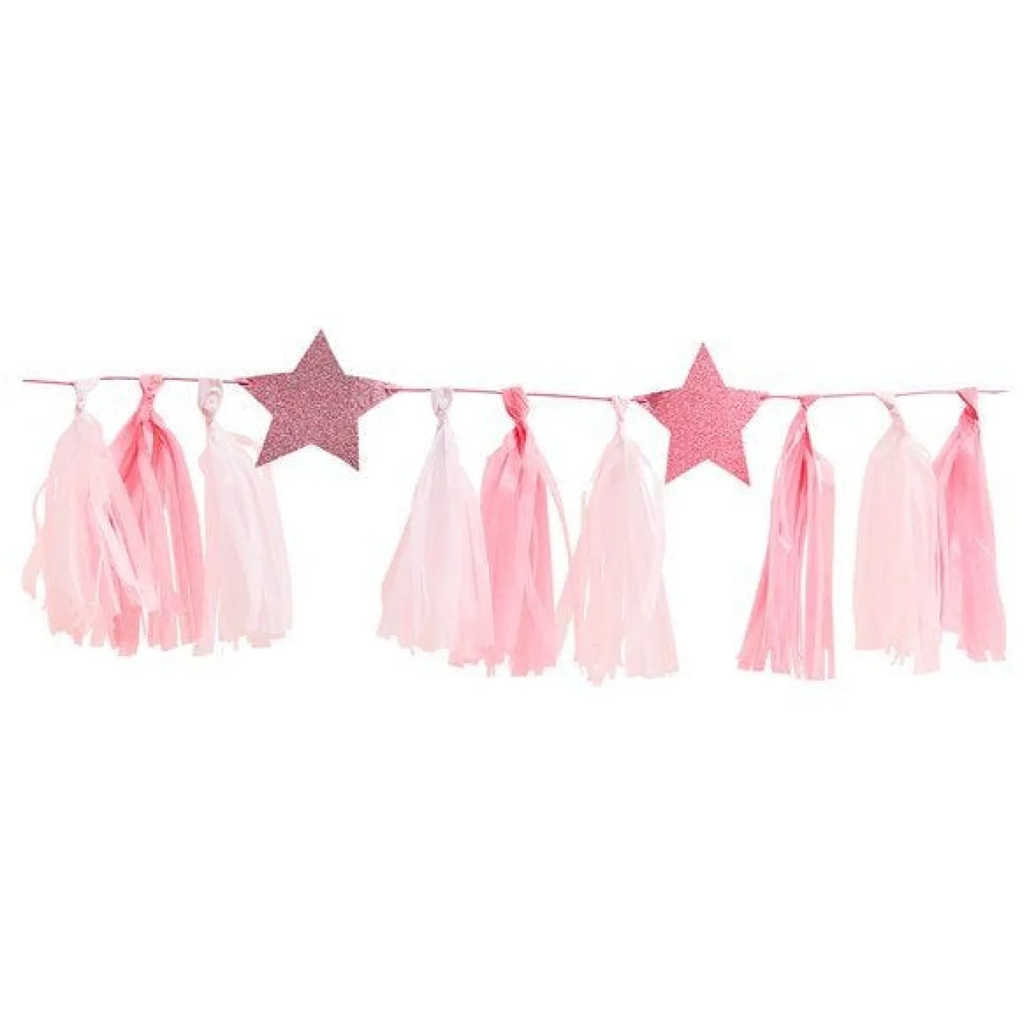 Pamper Party Pink Glitter Star Tassel Garland – 2M