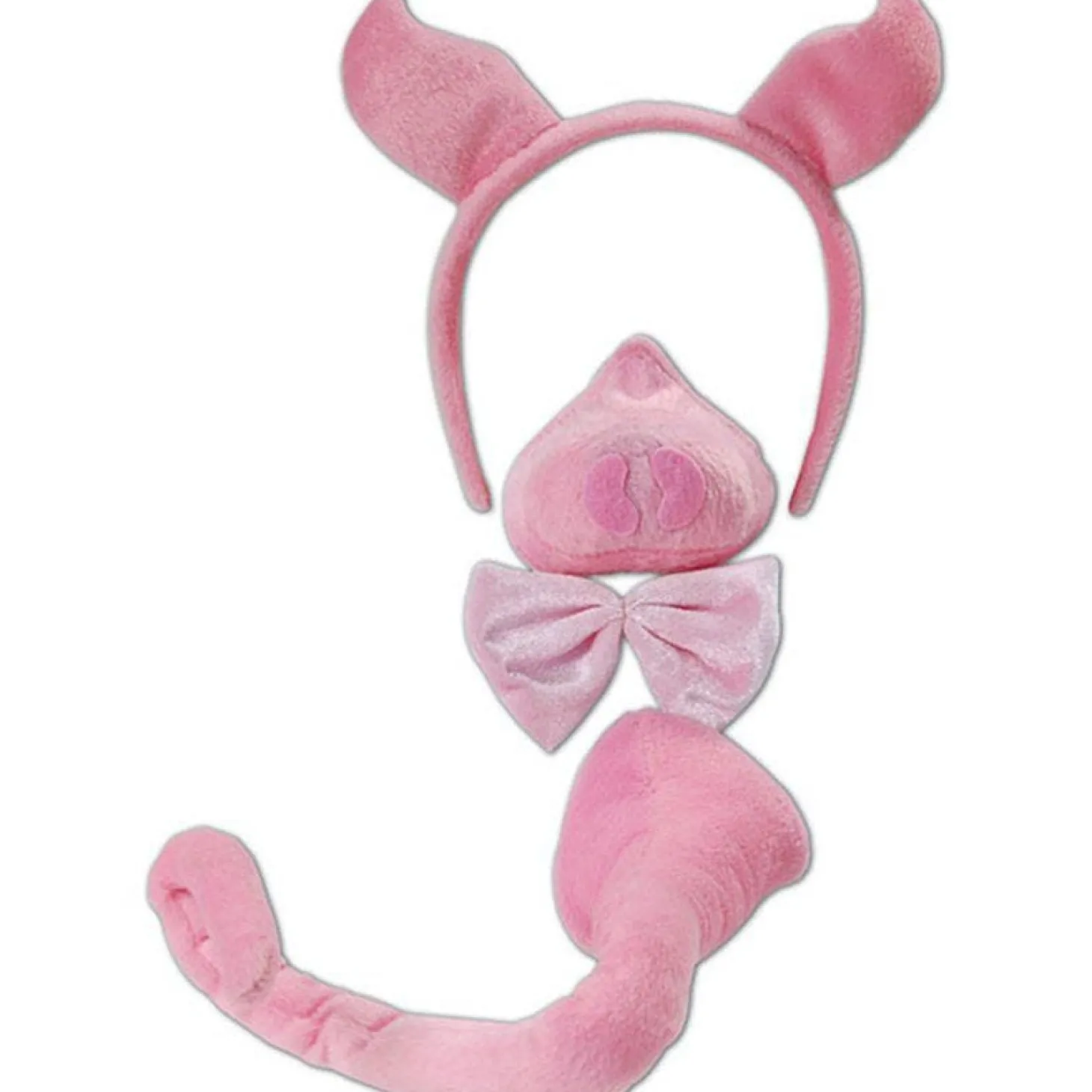 Your Little One Will Be Squealing With Delight,With This Instant Pig Set, Featuring A Headband With Ears, Elasticated Tail, Elasticated Nose With Sound Effect And Pink Bowtie All In A Soft Feel Fabric.