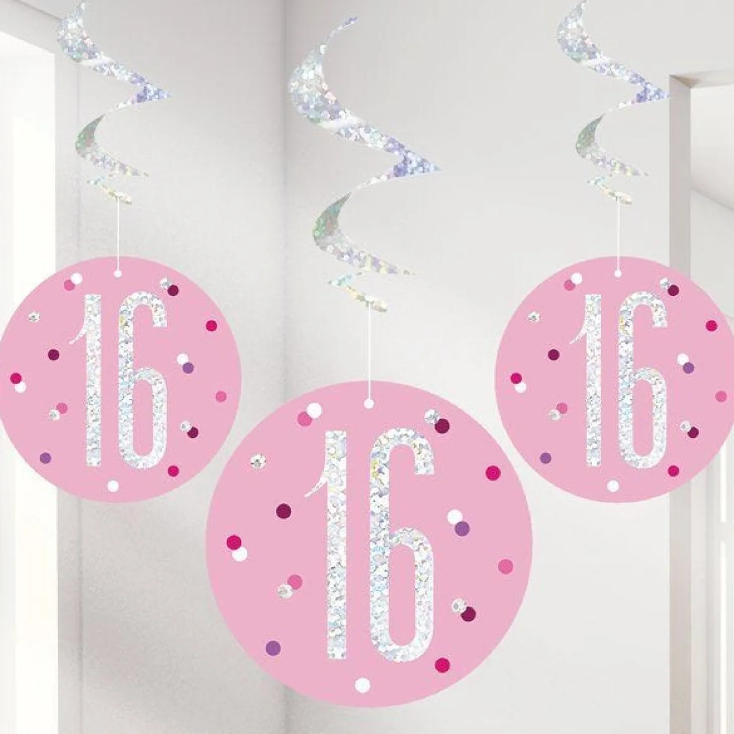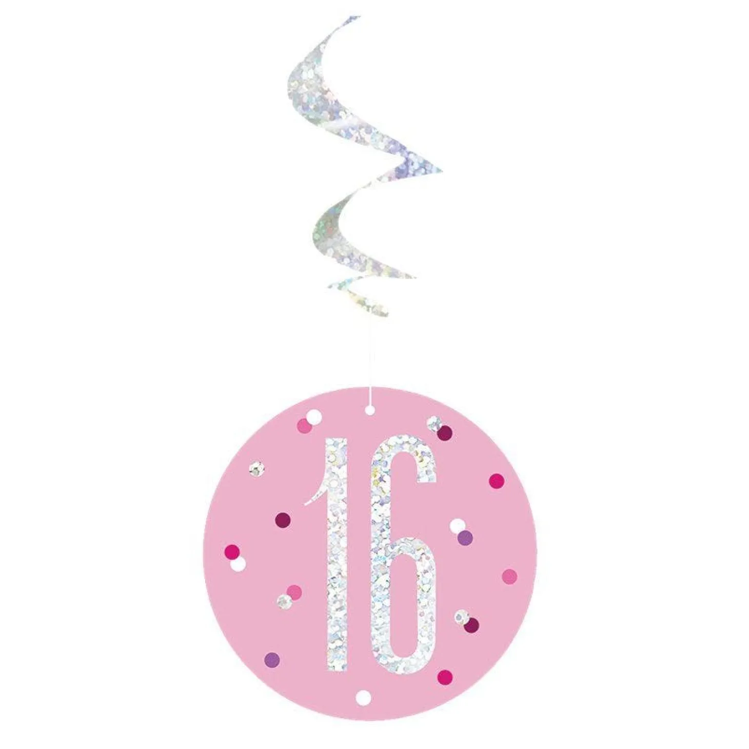 Pink 16Th Birthday Hanging Swirls – 80Cm