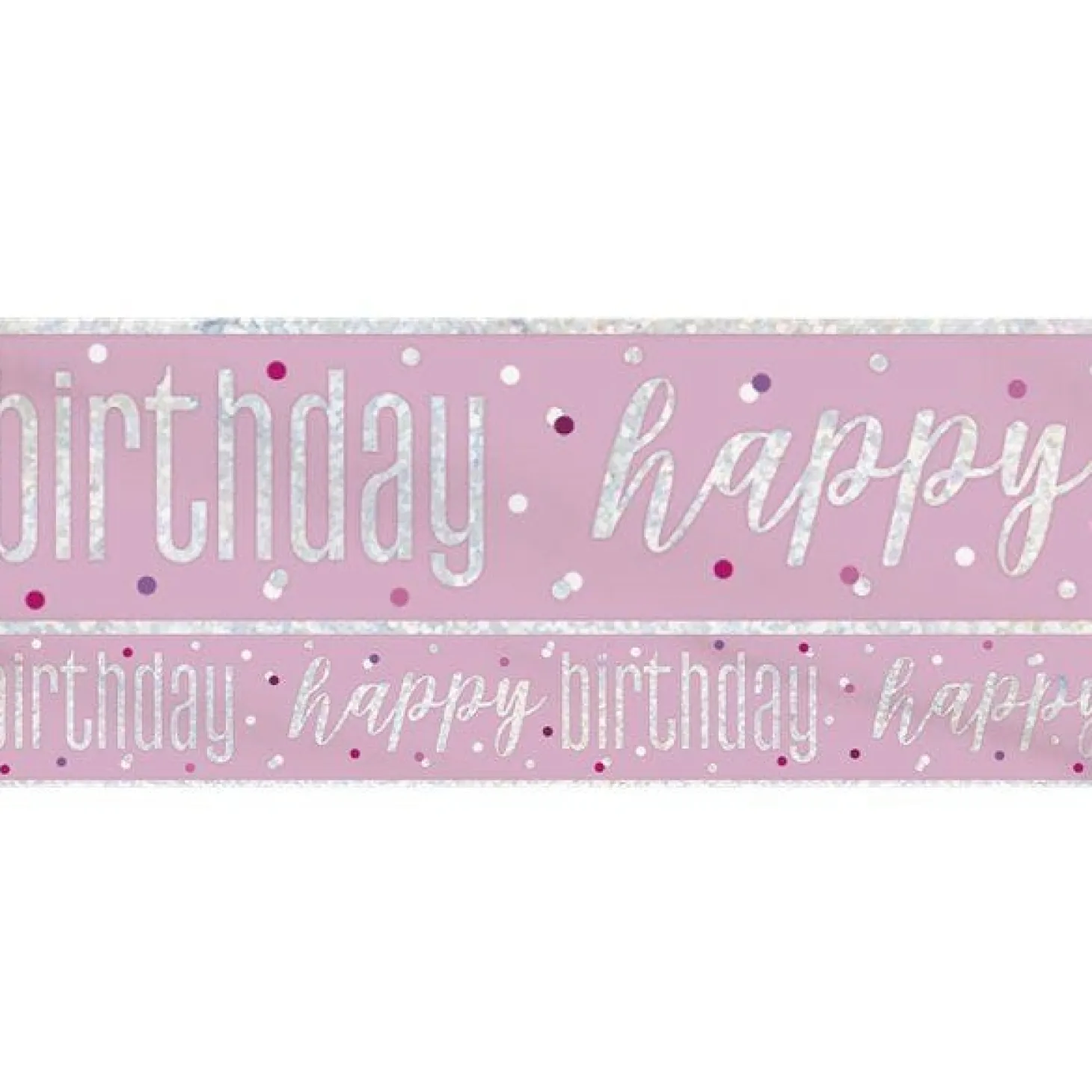 Pink ‘Happy Birthday’ Foil Banner – 2.75M