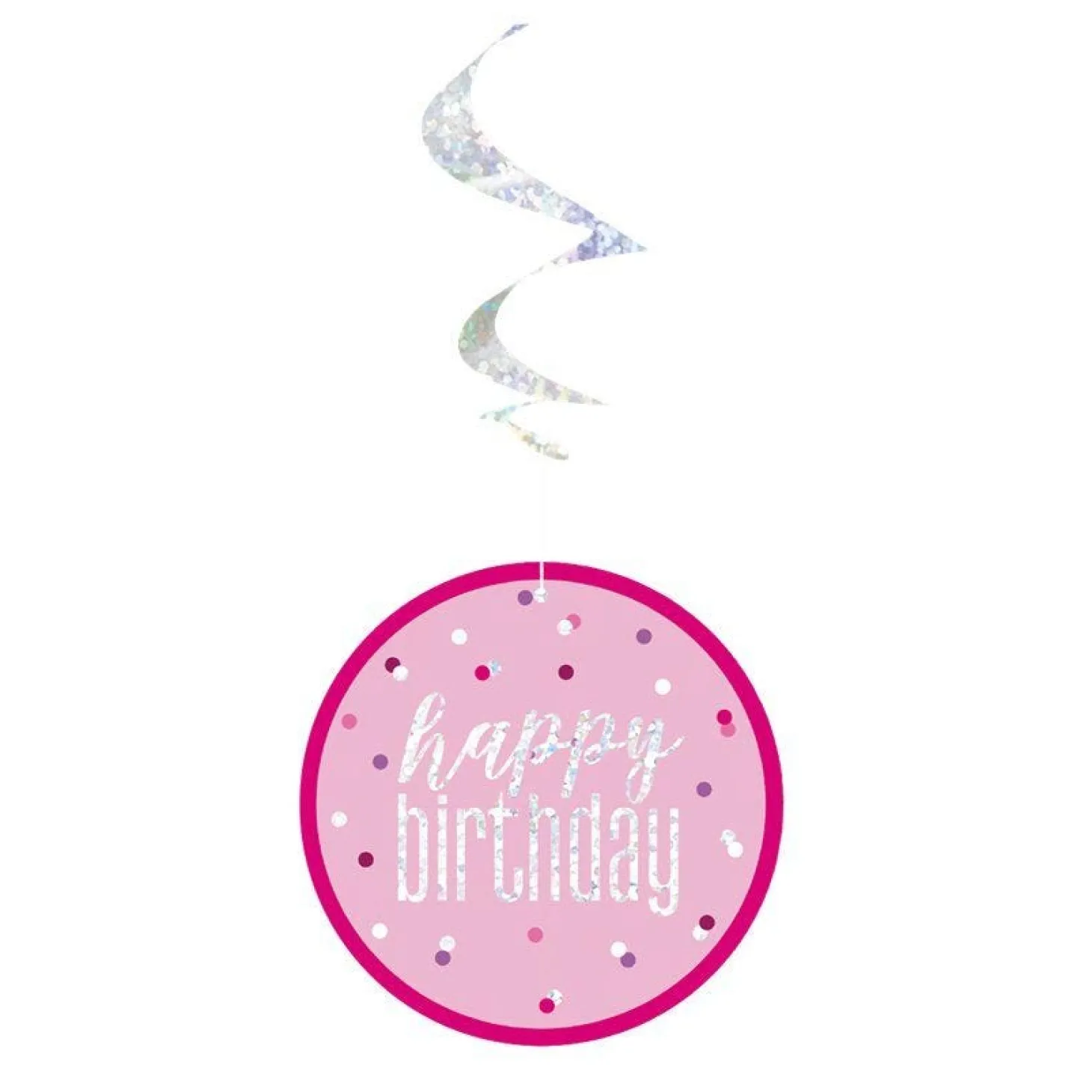 Pink ‘Happy Birthday’ Hanging Swirls – 80Cm