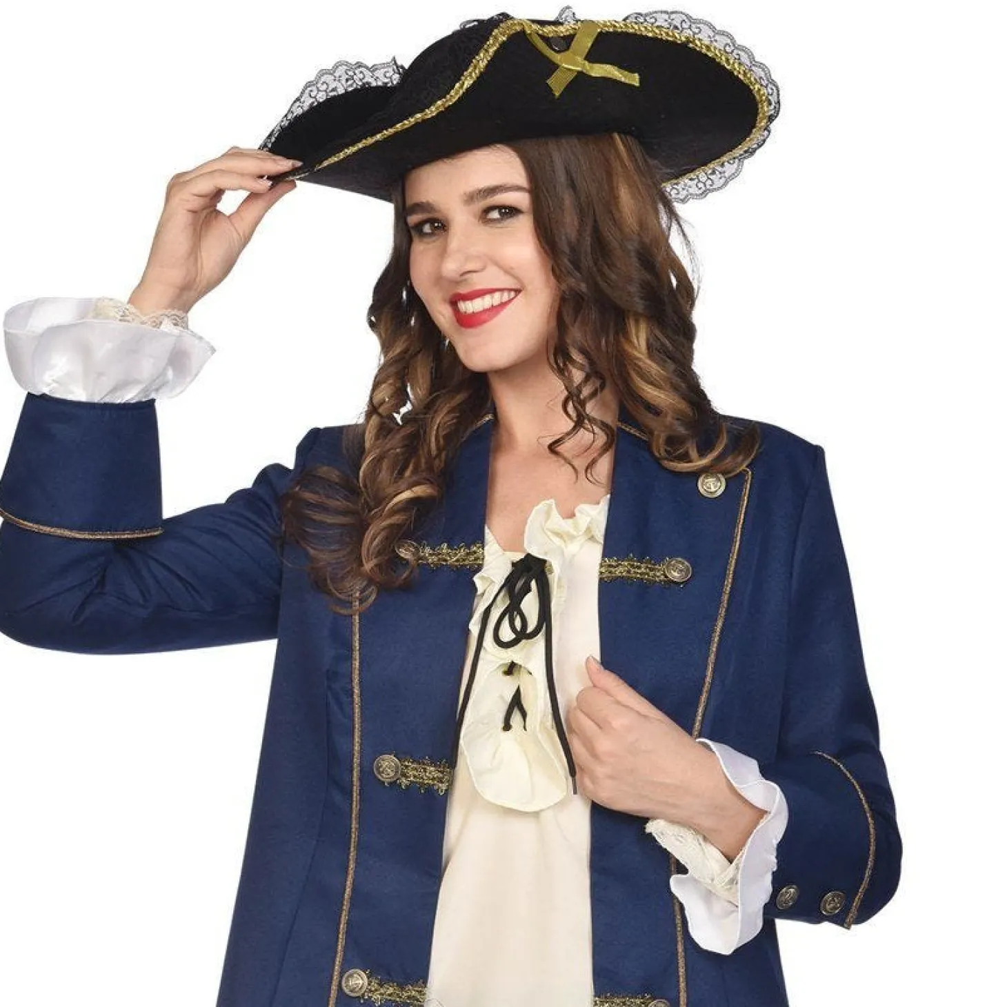 Become The Prettiest Pirate Around – A Gorgeous Sleek Black Hat With Gold Braid And Black Lace Trim. It’s A Stylish Addition To Finish Off Your Sea Captain Fancy Dress Costume.
