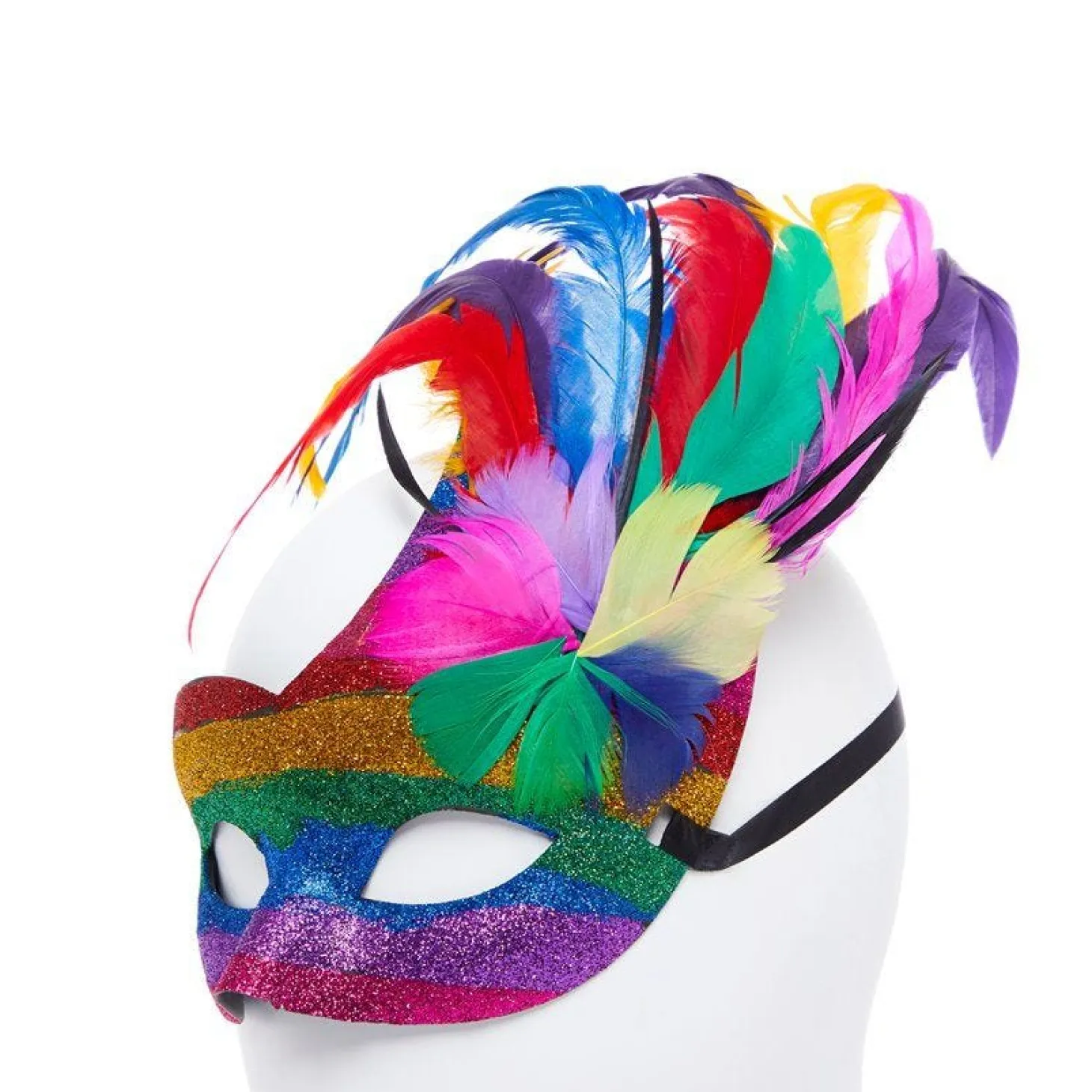 Add A Splash Of Colour To Your Fancy Dress Attire With This Rainbow Masquerade Mask And Get Everybody Into The Carnival Spirit. Sparkling And Glittering It Catches The Light And There’s A Pretty Plume Of Rainbow Feathers Too, A Perfect Party Piece For Pride, Nights Out And Festivals, Making Your Outfit Shout Out And Pop With Vibrancy.