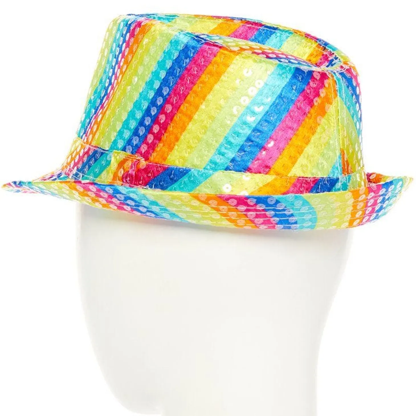 This Sequin Fedora Hat Is The Perfect Accessory When You Want To Make A Colourful Statement – Great As Festival Headwear! With Its All Over Sequin Decoration And Bright Rainbow Colours This Unisex Fedora Hat Will Certianly Colour Your World!
