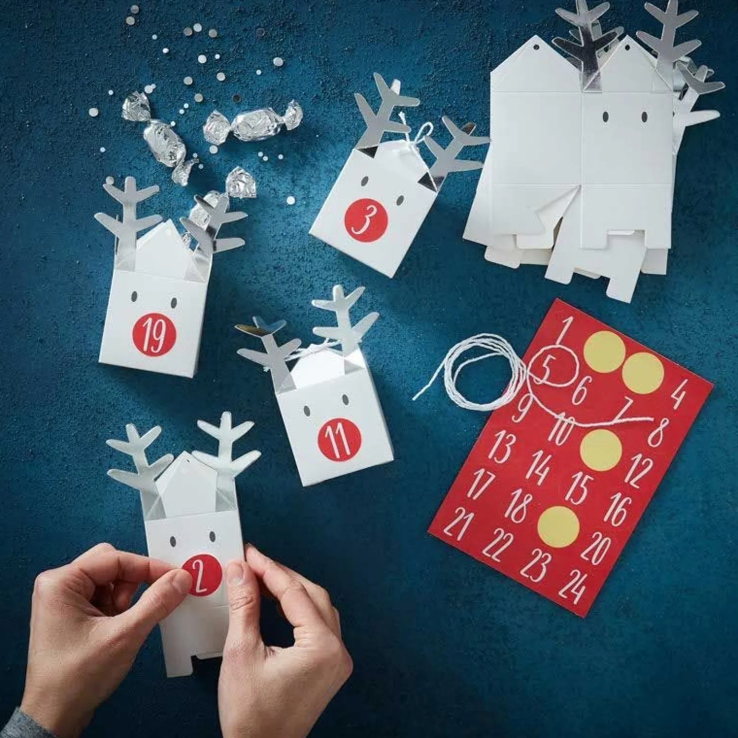 Countdown To Christmas With These Super Cute Advent Boxes. Each Pack Includes 24 Boxes, 24 Silver And White Twine, 1 X Sticker Sheet. Boxes Measure:12Cm (H) X 6Cm(W) With Antlers And 6 X 6Cm Without The Antlers.