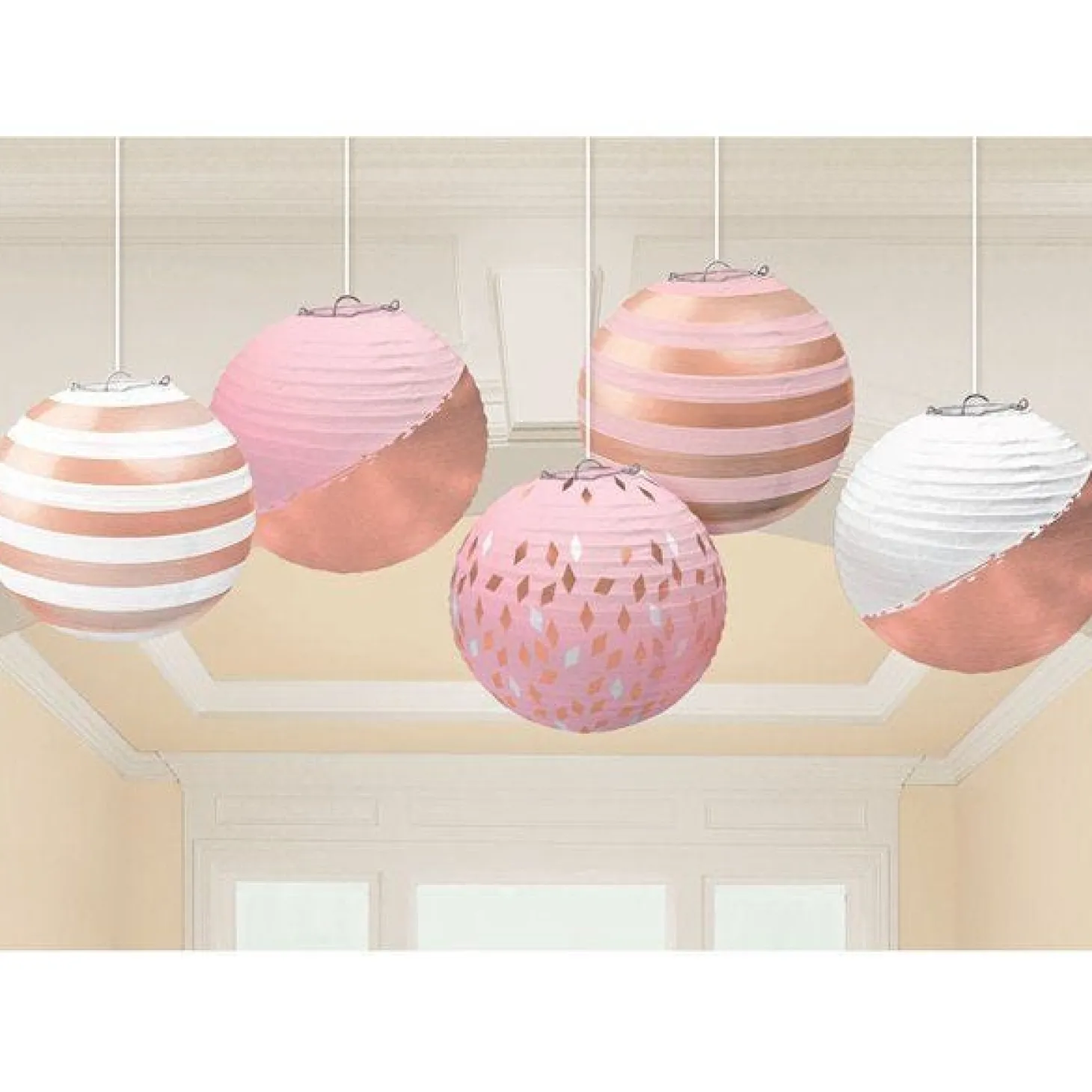 Rose Gold Blush Paper Lantern Decorations – 12Cm (5Pk)