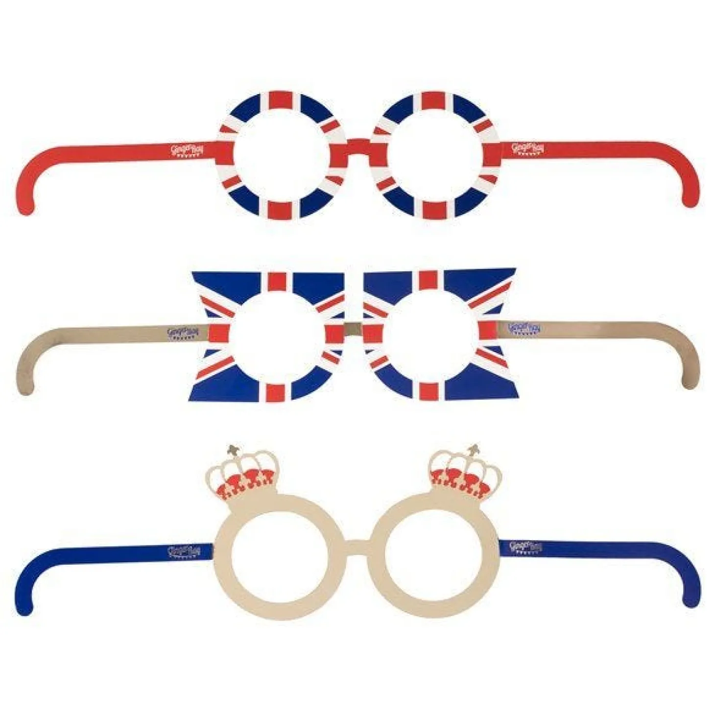 - Each Pack Contains 8 X Paper Union Jack Glasses: 3 X Gold Crown Glasses, 3 X Round Union Jack Glasses And 2 X Flag Union Jack Glasses