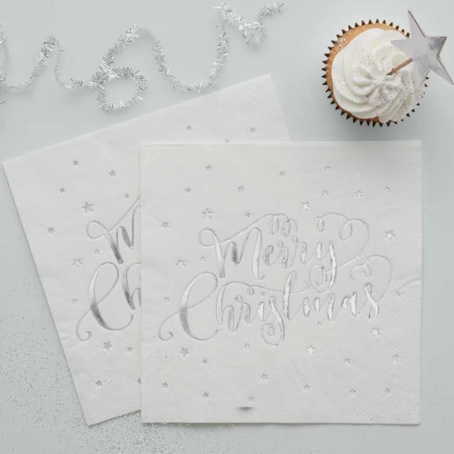 Add A Touch Of Glam To Your Party With These Silver Foiled ‘Merry Christmas’ Napkins. Each Pack Contains 20 Christmas Paper Napkins. Each Pack Contains 20 Napkins Measuring: 33Cm Square When Opened Out. Napkins Are 3 Ply.