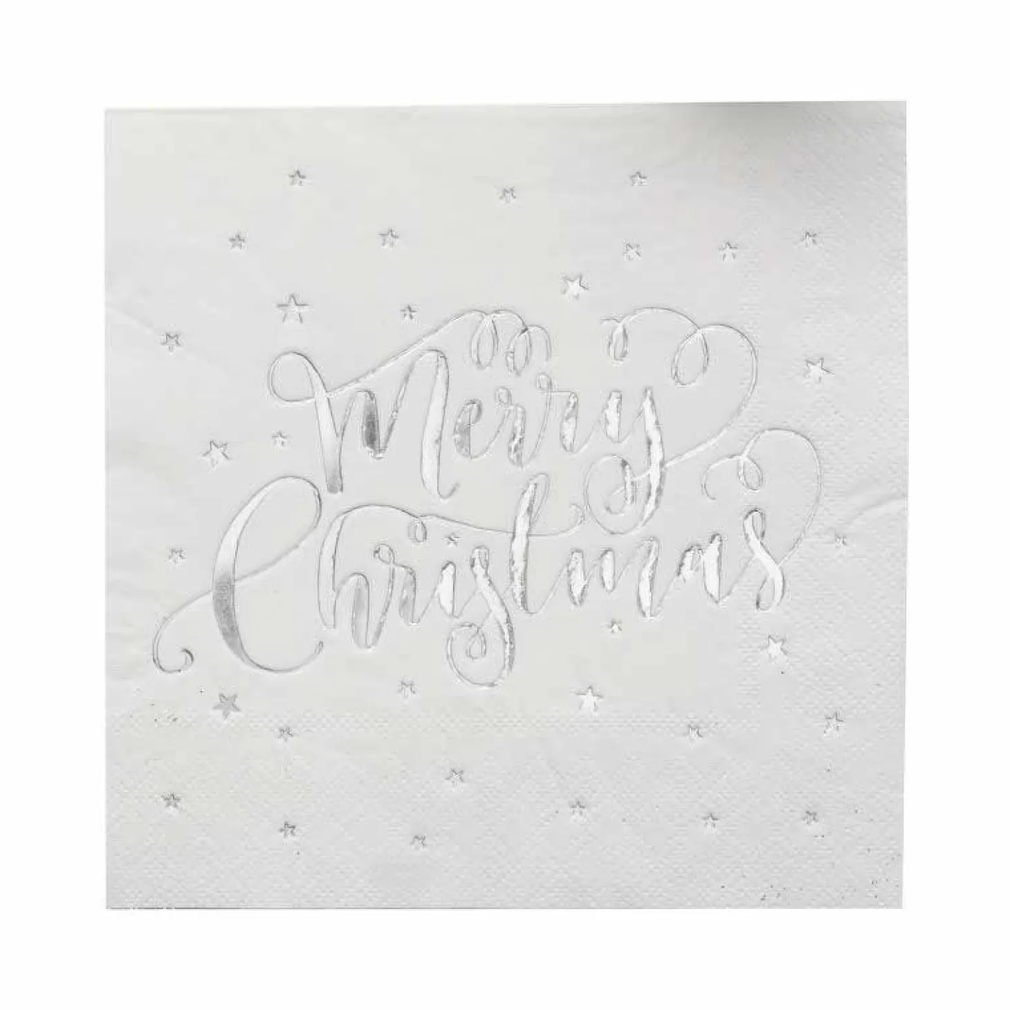 Silver Foiled Merry Christmas Paper Napkin – 33Cm (20Pk)