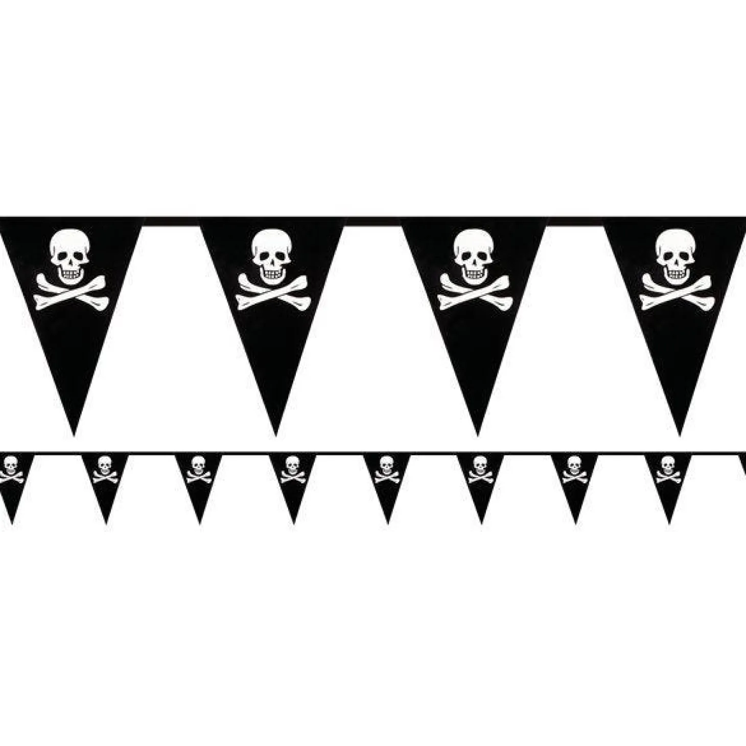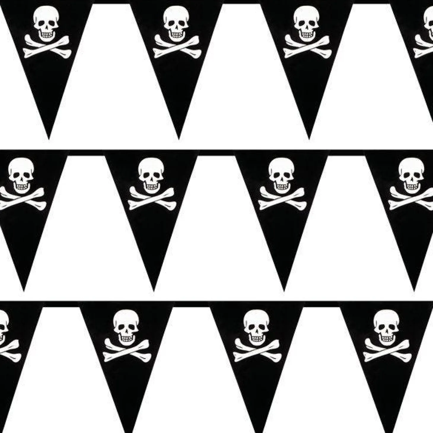 Black Triangular Flag Bunting, Featuring A White Skull And Crossbones Pirate Design.
