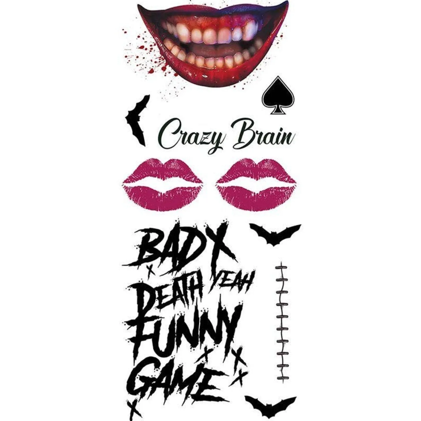 Add The Finishing Touch To Your Fancy Dress Outfit With Temporary Tattoos! These Comic Book Style Smiler Tattoos Will Look Great On Their Own Or When Teamed With Costume Make-Up.